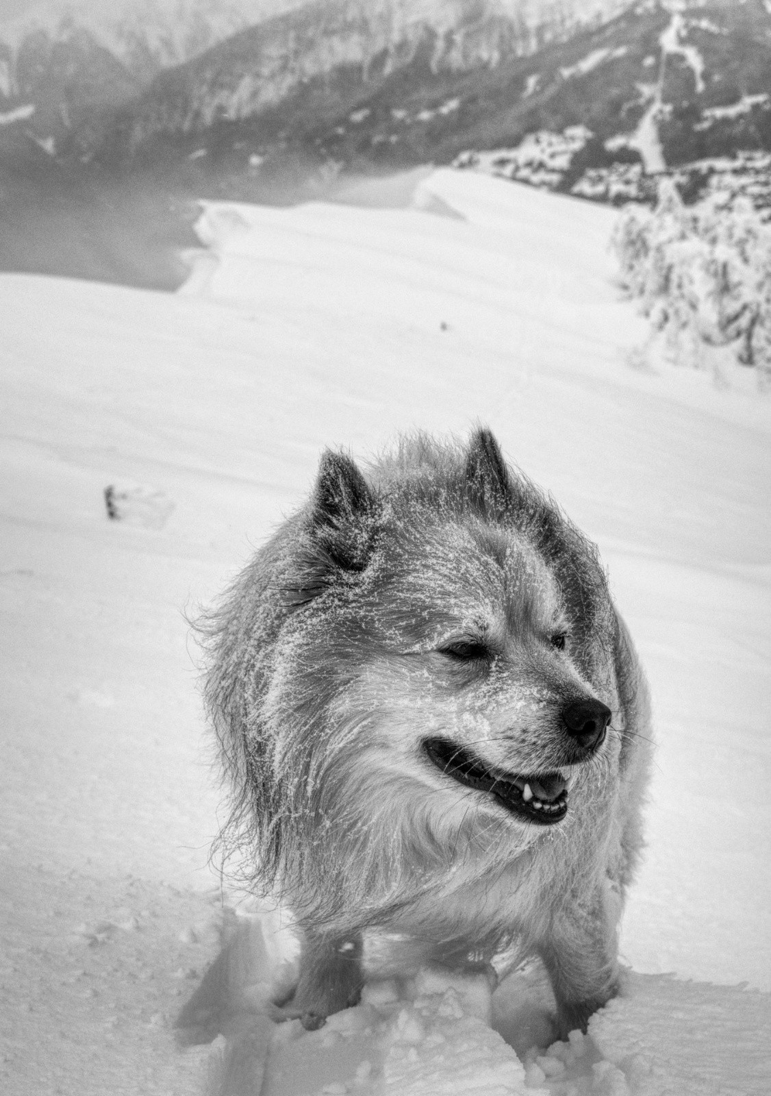 Ambiance douce et paisible au départ dans la forêt - mais arrivé dans le blizzard, on ne rigole plus.