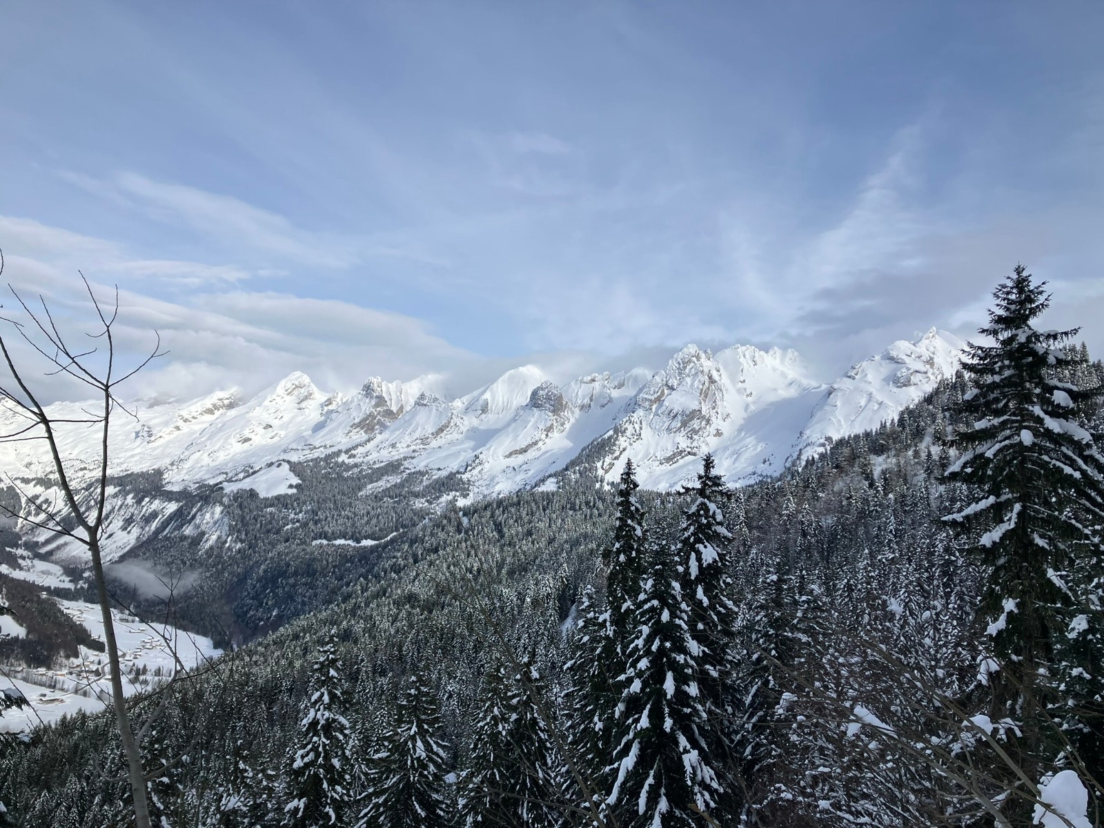 Conditions pour le ski : sous bombardellaz : poudre froide TB, puis de plus en plus humide en bas, Annes : poudre humide en haut, sur le bas très humide, danay sw : poudre en cours de transfo ok