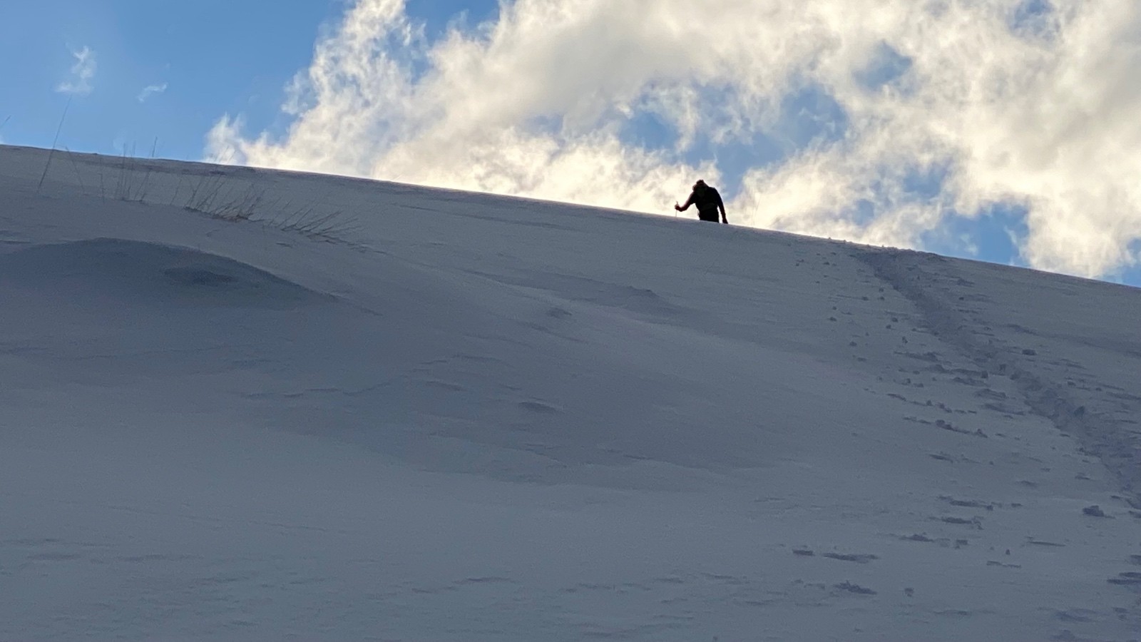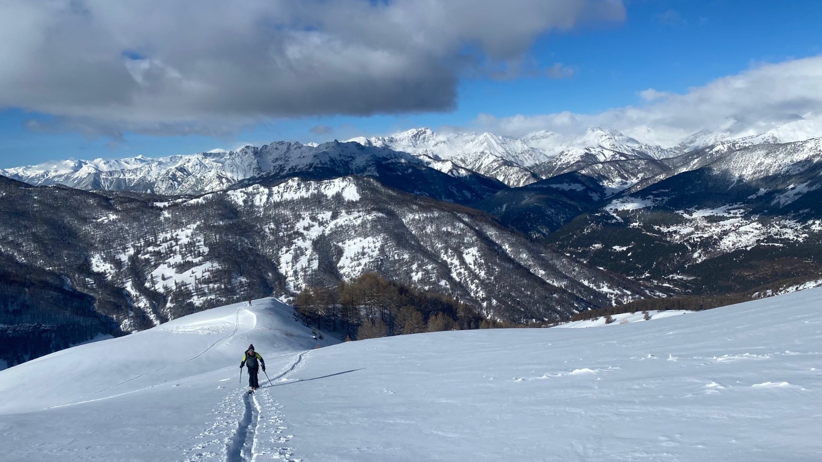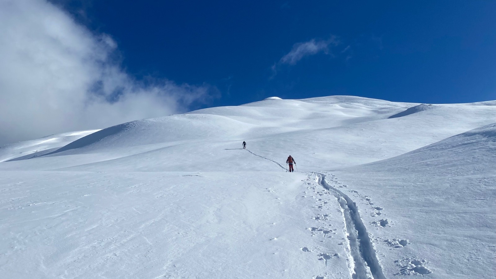 une belle classique tracée par Claude en compagnie de Michel et Christian. Nous avons été rattrapé par trois jeunes sous le sommet qui ont suivi notre trace et qui ont ouvert la descente. Bien en bas, nous avons retrouvé une multitude de petits groupes partis bien après nous.