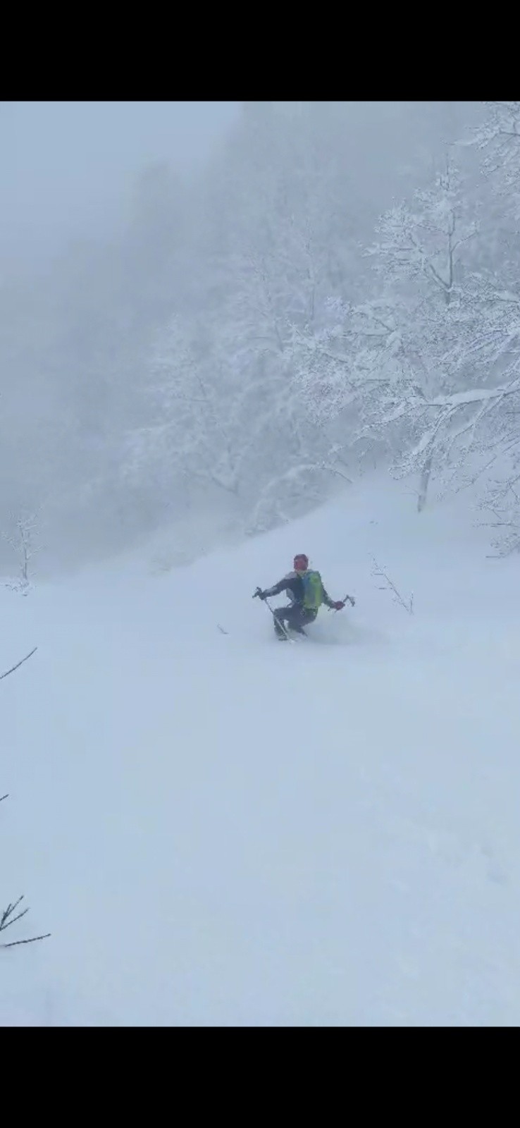 Petit bémol avec une neige devenant plus lourde dès 1500m, mais ça reste du 4* global du fait que c'était vierge.