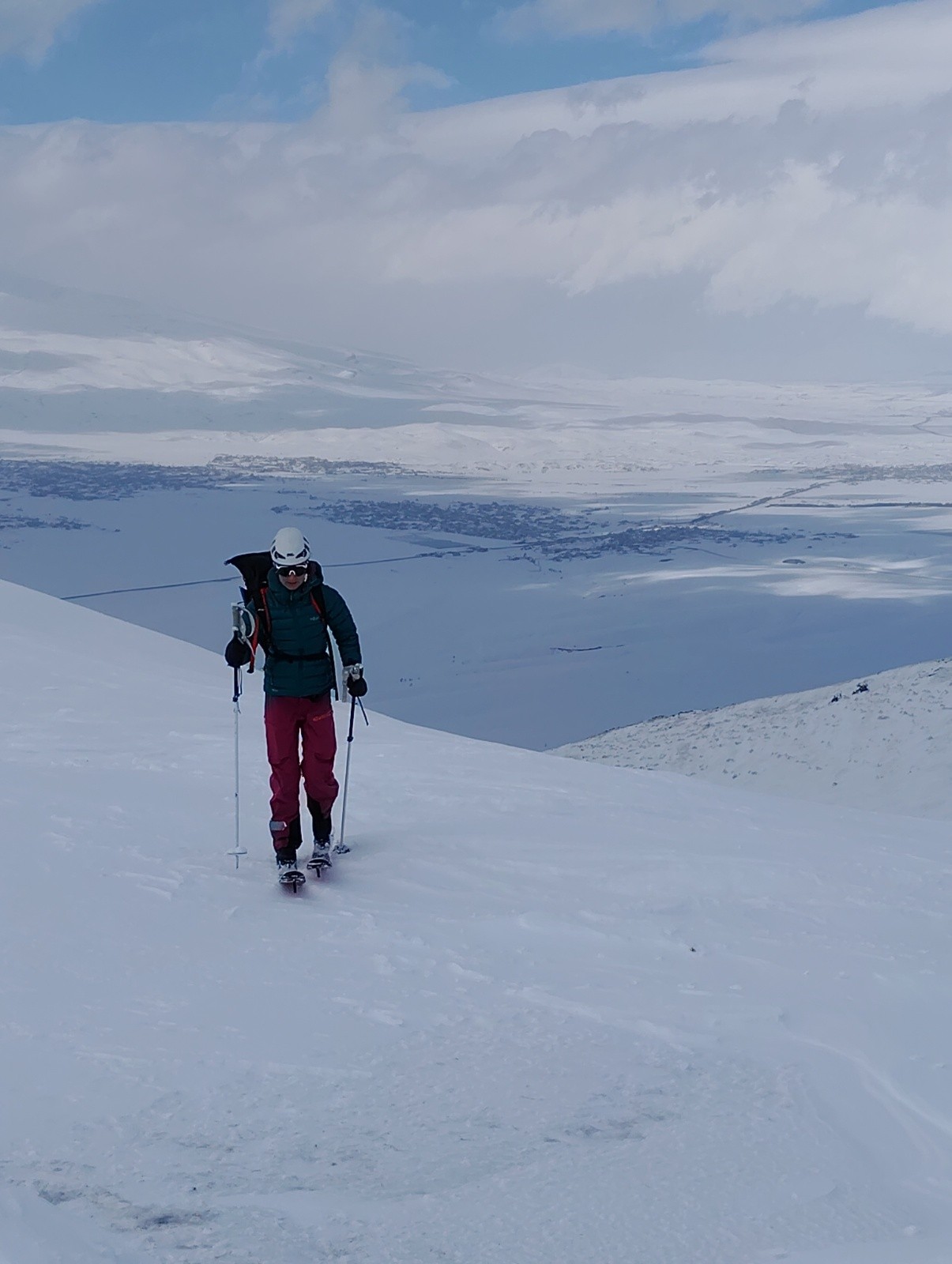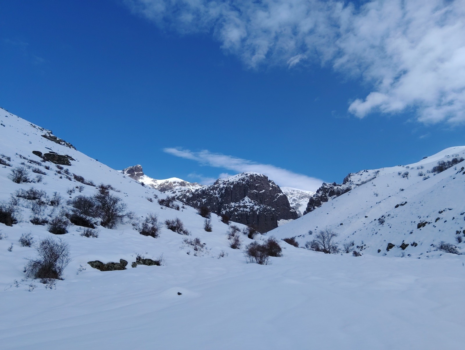 Itinéraire suivi : on est parti à l'exploration pour ce second jour sans savoir si notre itinéraire marchait. On remonte le vallon qui devient couloir, la neige durci ce qui nous rassure. On sort dans de belles pentes au dessus puis on chemine vers le sommet.