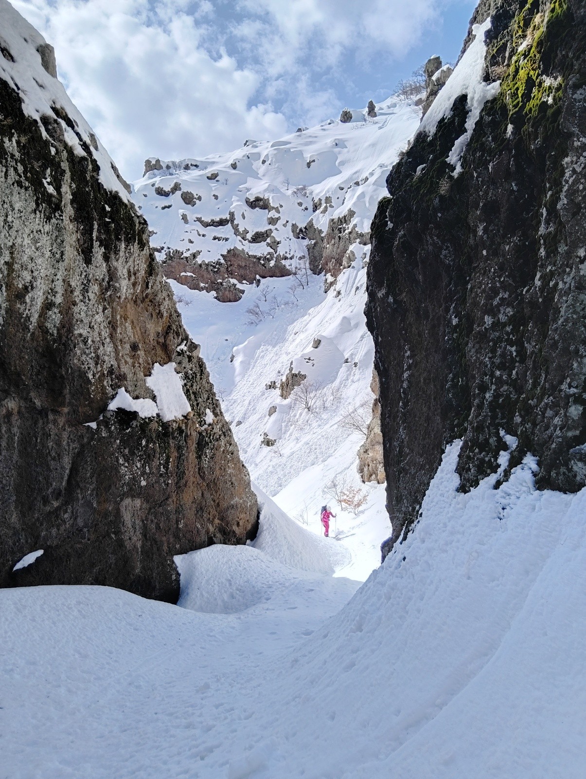 Conditions nivo et activité avalancheuse : quelques anciennes purges, dont une avalanche au passage raide du couloir. Certaines pentes sous le vent semblent plaquées