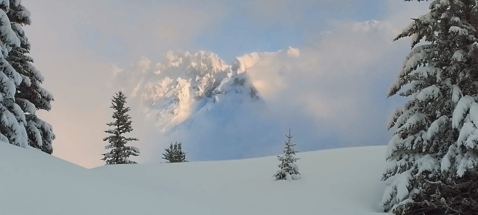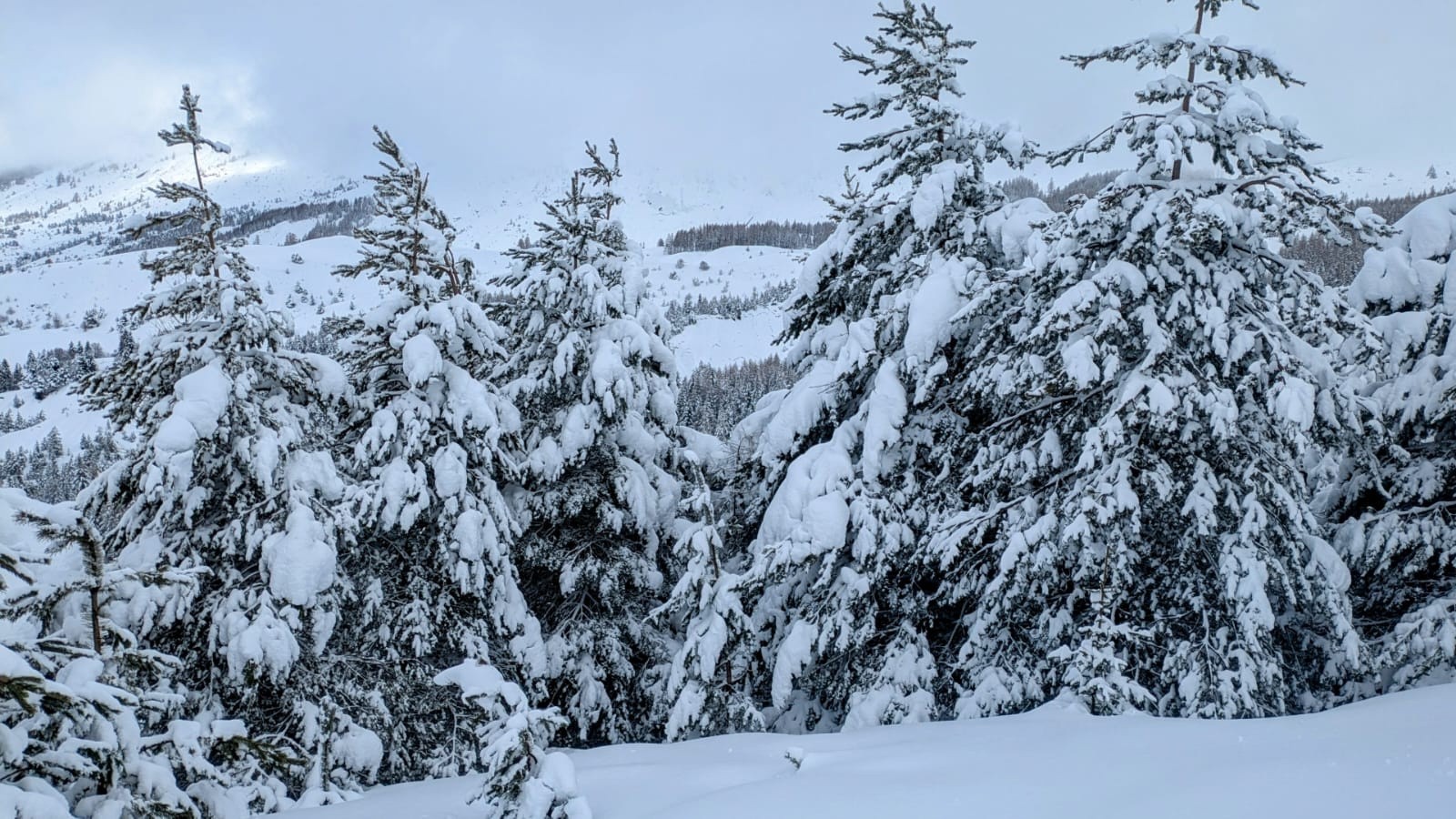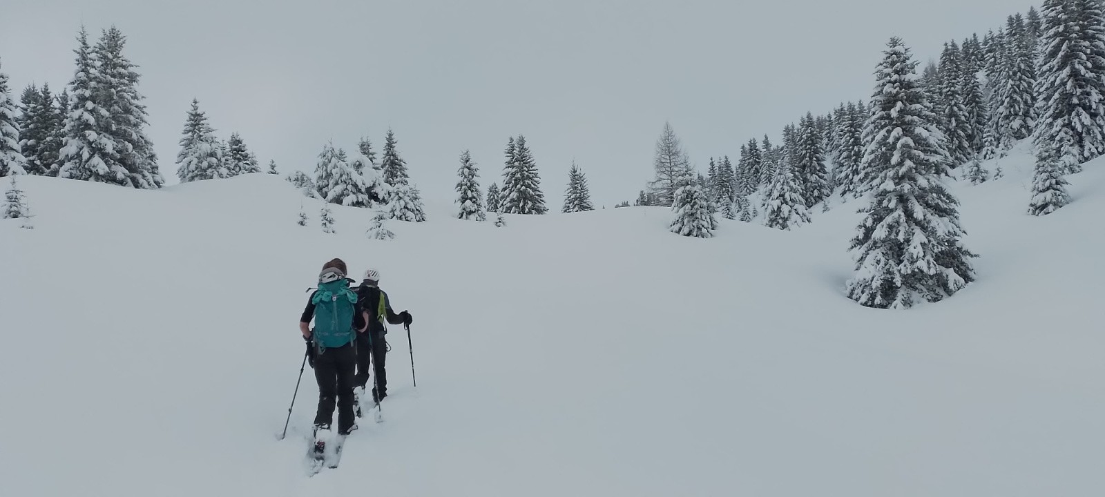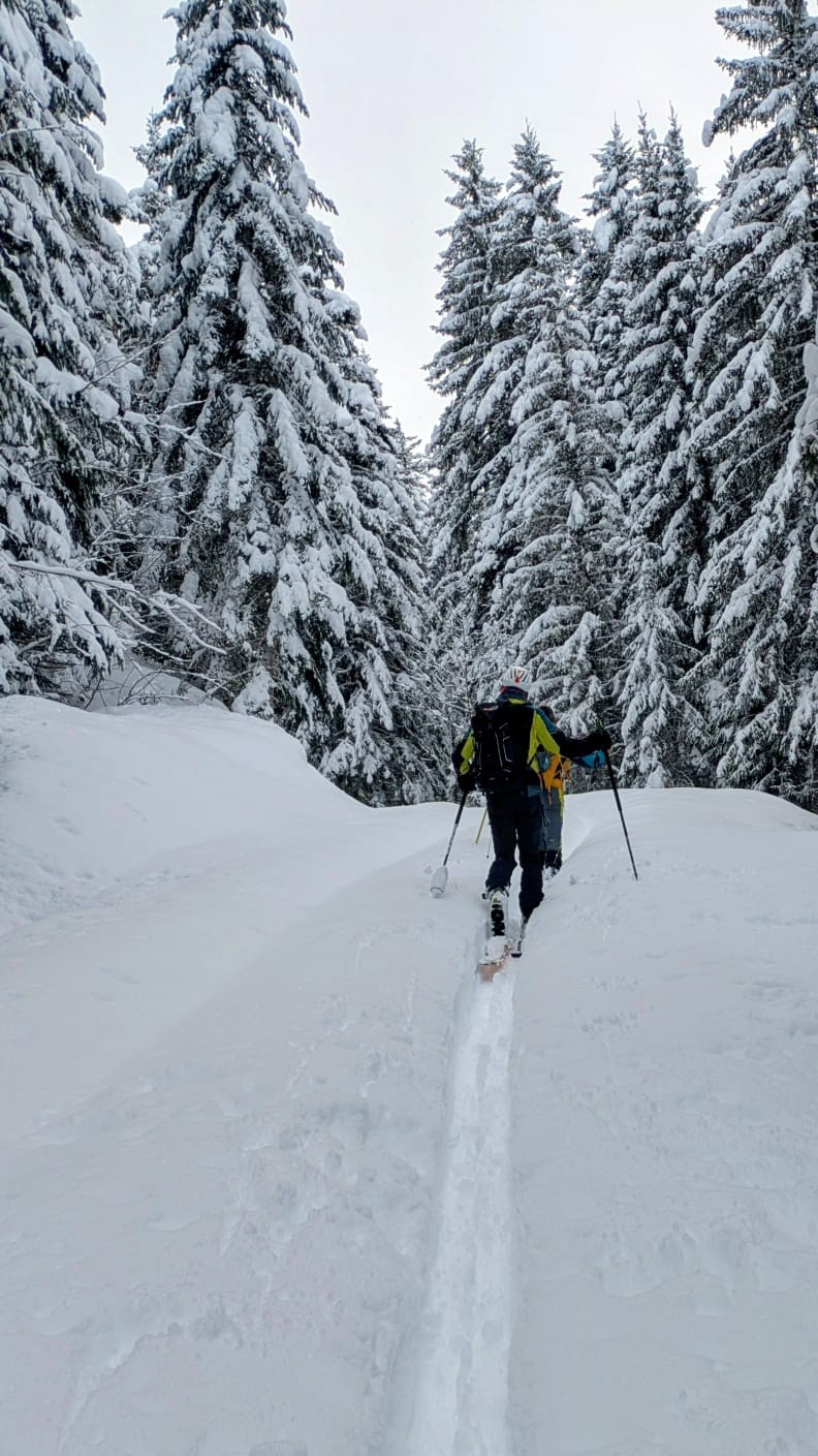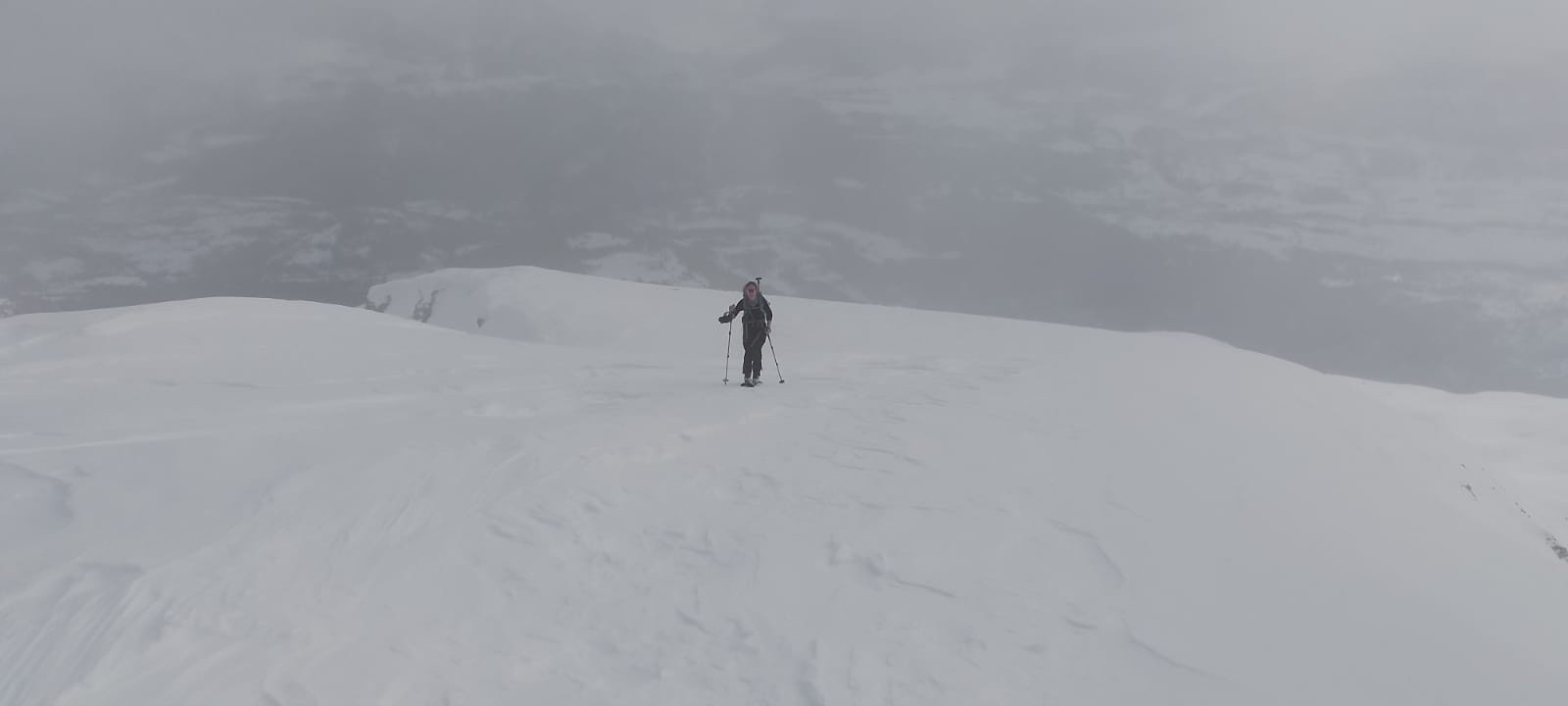 Bon ce 4ème jours dans le Dévoluy ne sauvera pas ce séjour compliqué du fait des conditions nivo et de la météo capricieuse mais on aura pris l'air et on aura bien rigolé. 4 jours à tracer dans du profond. Aujourd'hui 660 m de D+ mais 1500 mètres en ressentie. Dès la sortie de la forêt on se prend les rafales de vent. Une descente au gps.