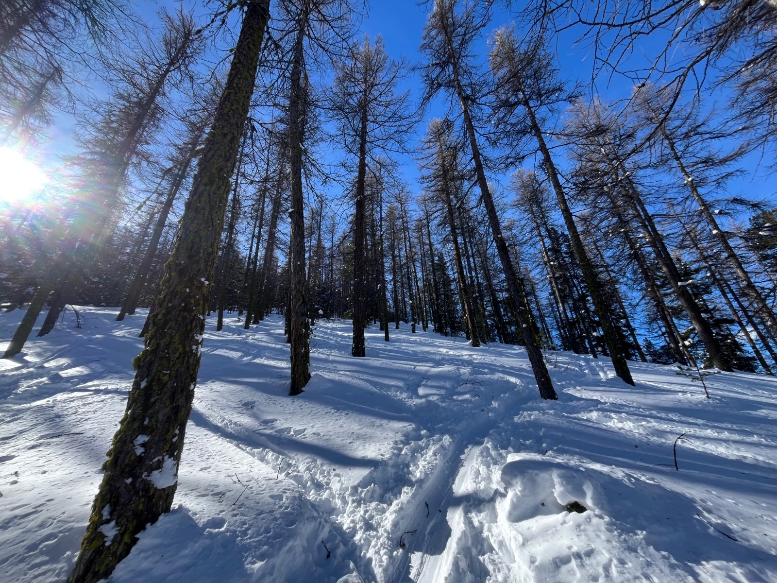 Conditions pour le ski : bonne neige encore légère sur la moitié haute.