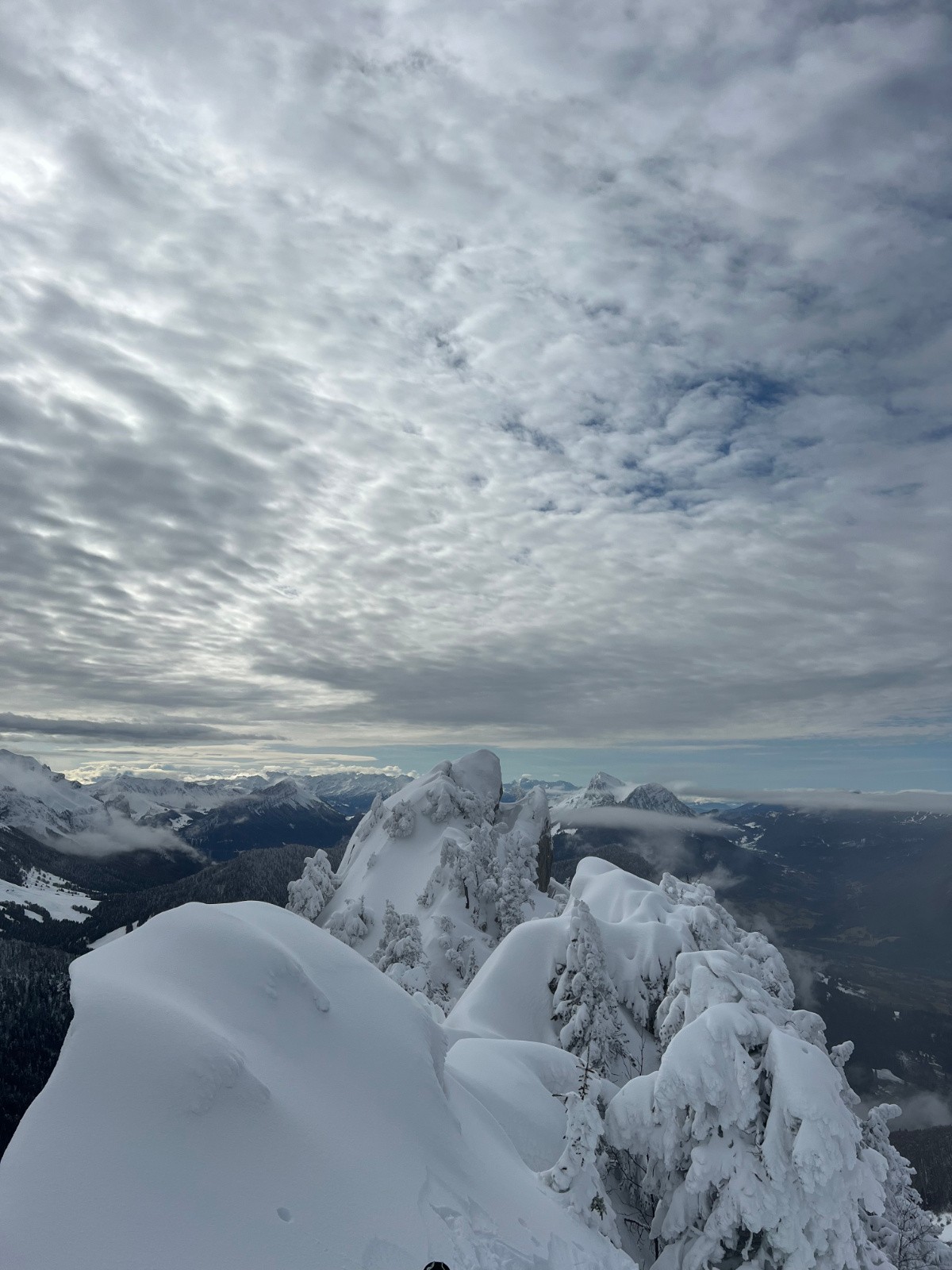 Les sapins sont sublimes avec toute cette neige humide qui donne un coté un peu Laponie une fois au sommet. Descente pas si pire jusqu'à 1500 environ après c'était vraiment lourd et humide.. les cuisses chauffent ! Rencontre de Cdtrelod74 avec qui on à fait une partie de la descente, très sympa et merci pour les photos ! au plaisir ;)