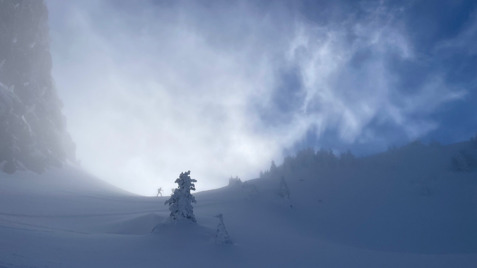 Avouons-le : c'est beau la montagne quand le BERA est à 5 et qu'on est à l'abri dans les bois, paysage idyllique et ambiance feutrée, trace impeccable et soleil en arrivant au pied du Grand Eulier.