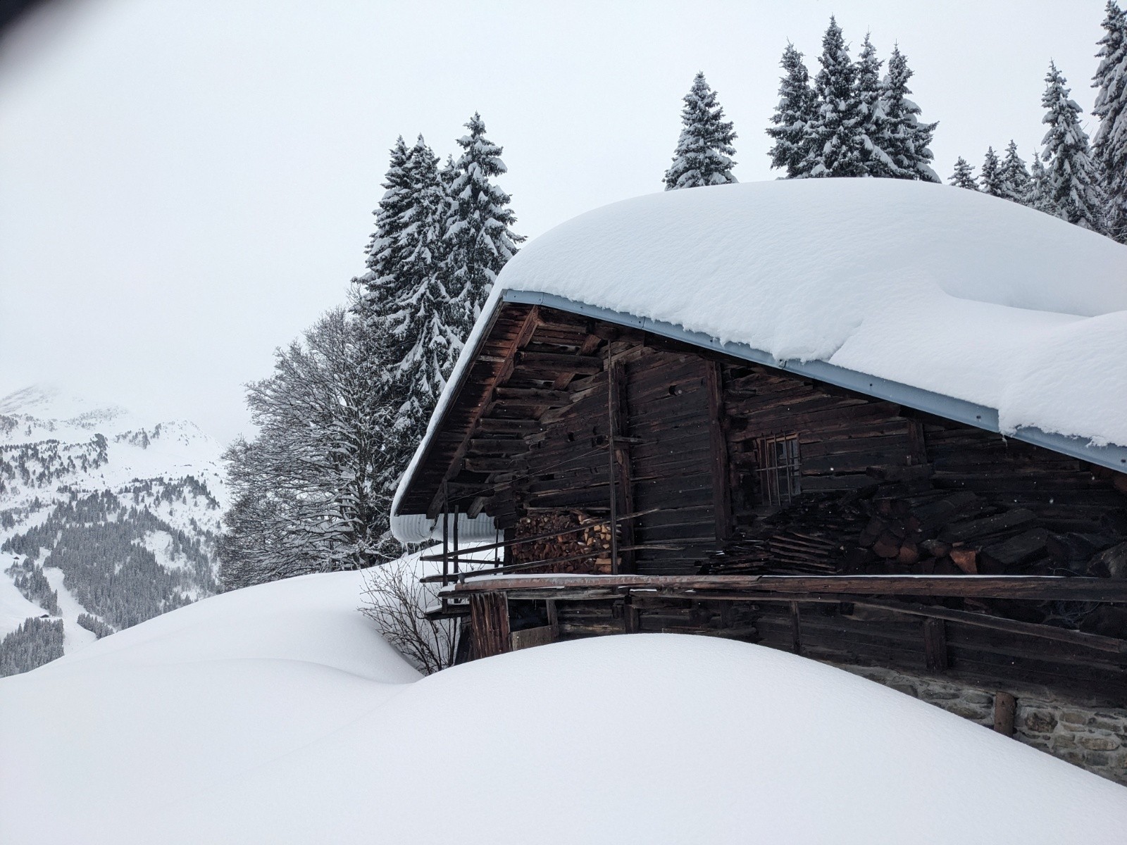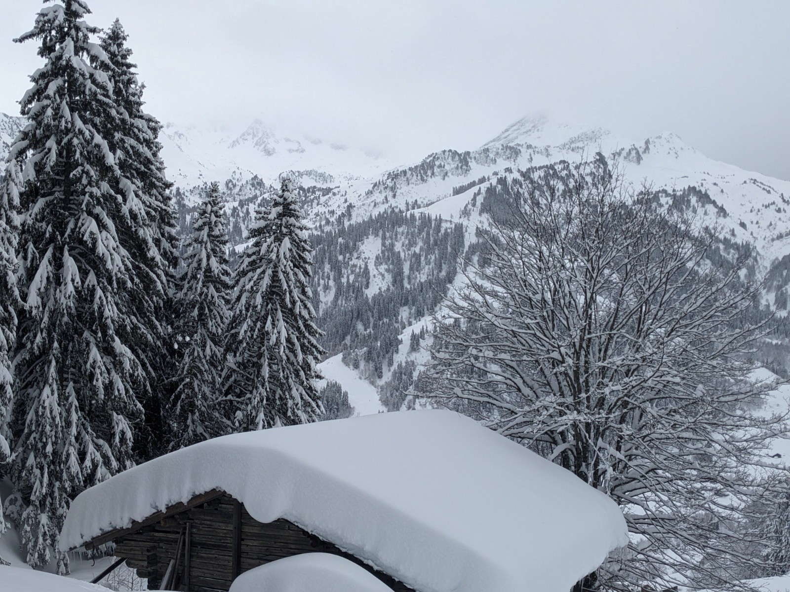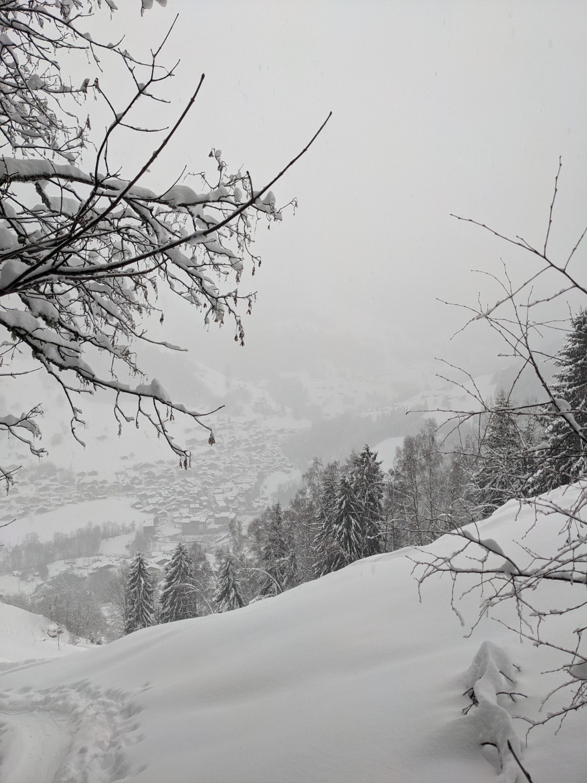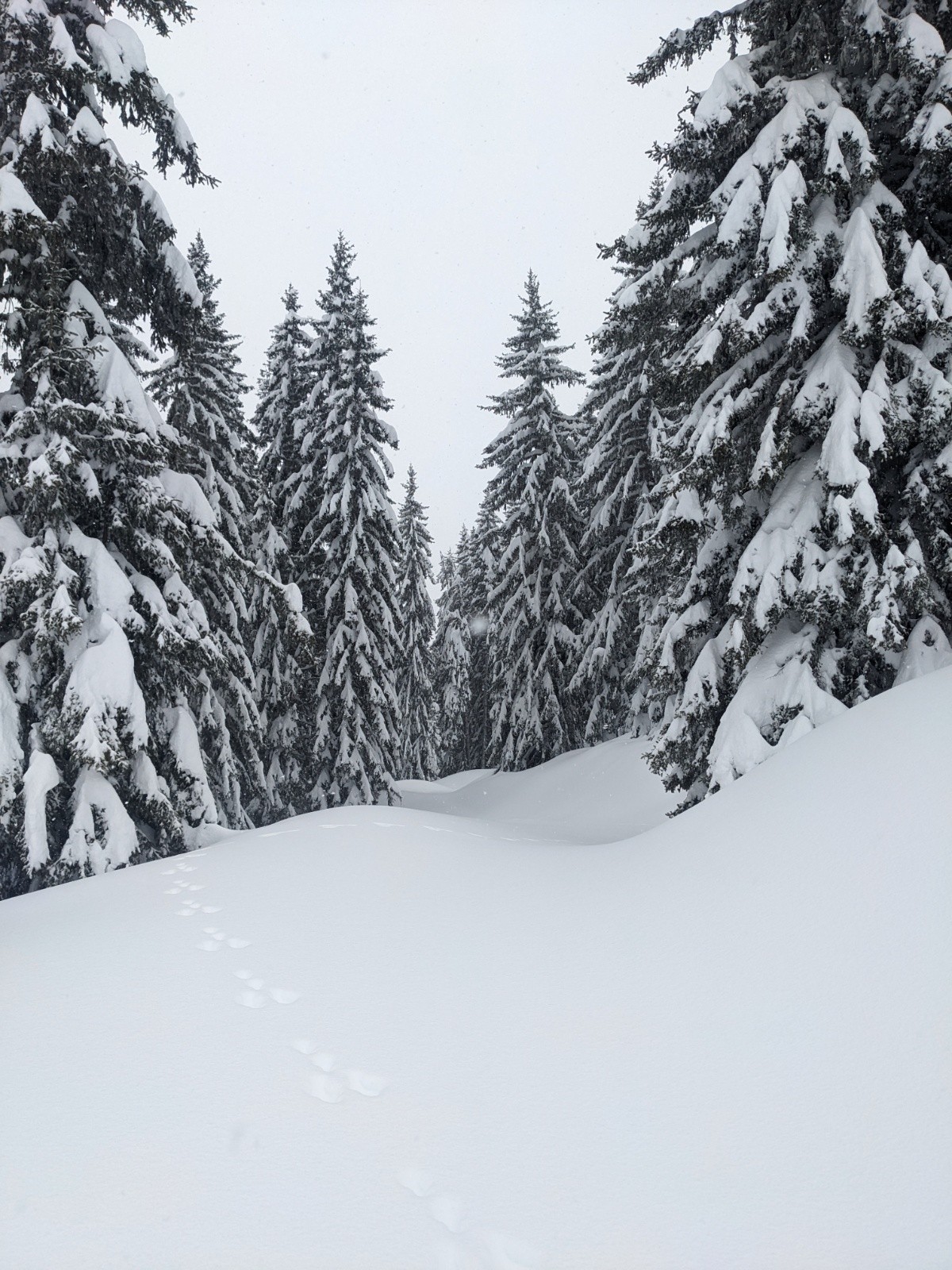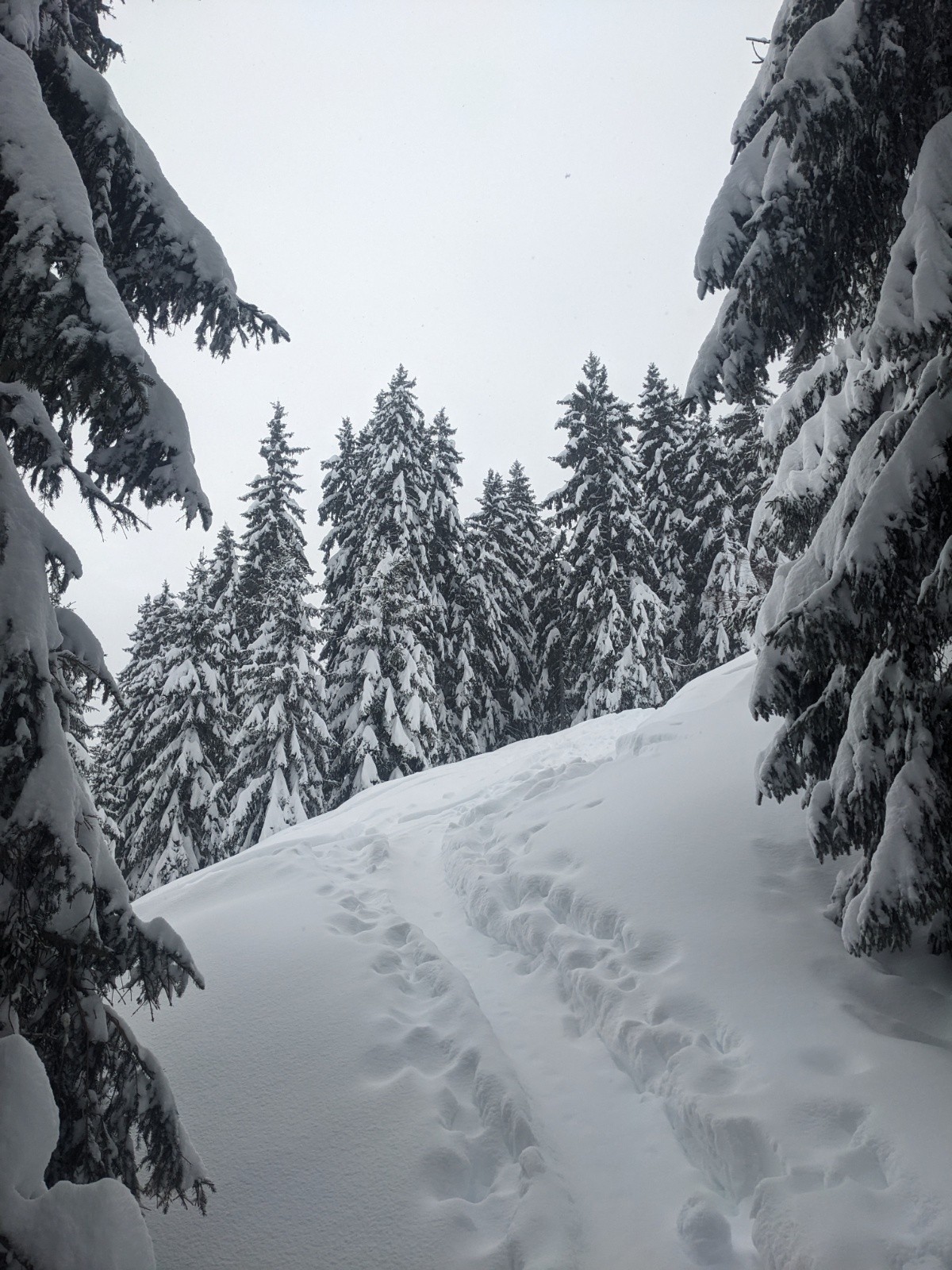 Par les Carroz pour avoir strictement aucune pente proche à plus de 30°. Gros traçage depuis Areches jusqu'à récupérer la trace principale.