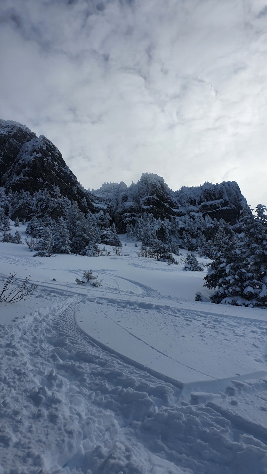 Conditions pour le ski : Bonnes au global même si la forêt était vraiment lourde. Le pré était en poudreuse lourde mais très facile à skier. Les barres ont un peu moins chauffé donc bien sympa aussi !