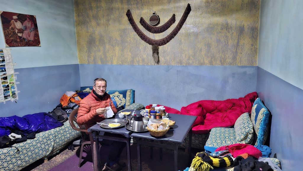 Mohamed nous prépare le gîte "La tulipe d'Ikiss", où nous faisons halte avant de monter sur le plateau de Tarkeddite. Nous le retrouverons 3 jours plus tard pour nous accompagner jusqu'à Arrouss avec sa mule.