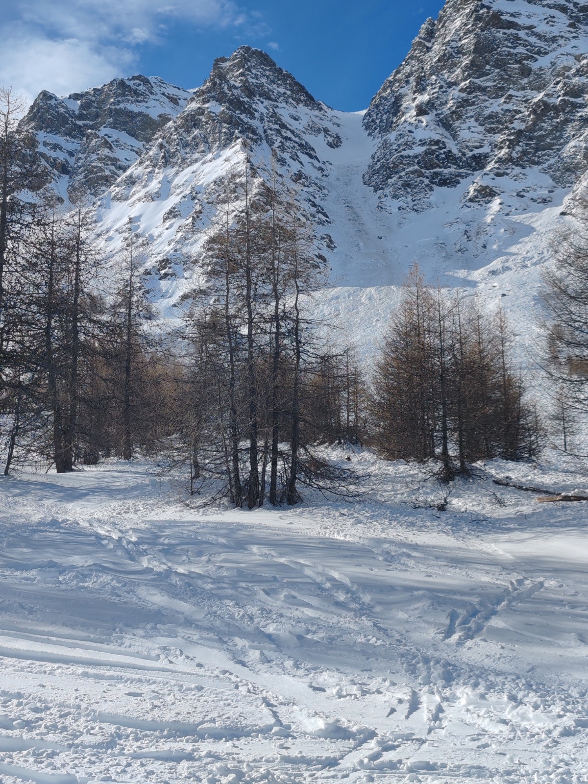 Conditions nivo et activité avalancheuse : RAS pourtant c'est plaqué dans toutes les orientations !La photo qui montre la rupture d'une kolossale plaque dans le milieu du couloir N de Château Renard en dit long ..
