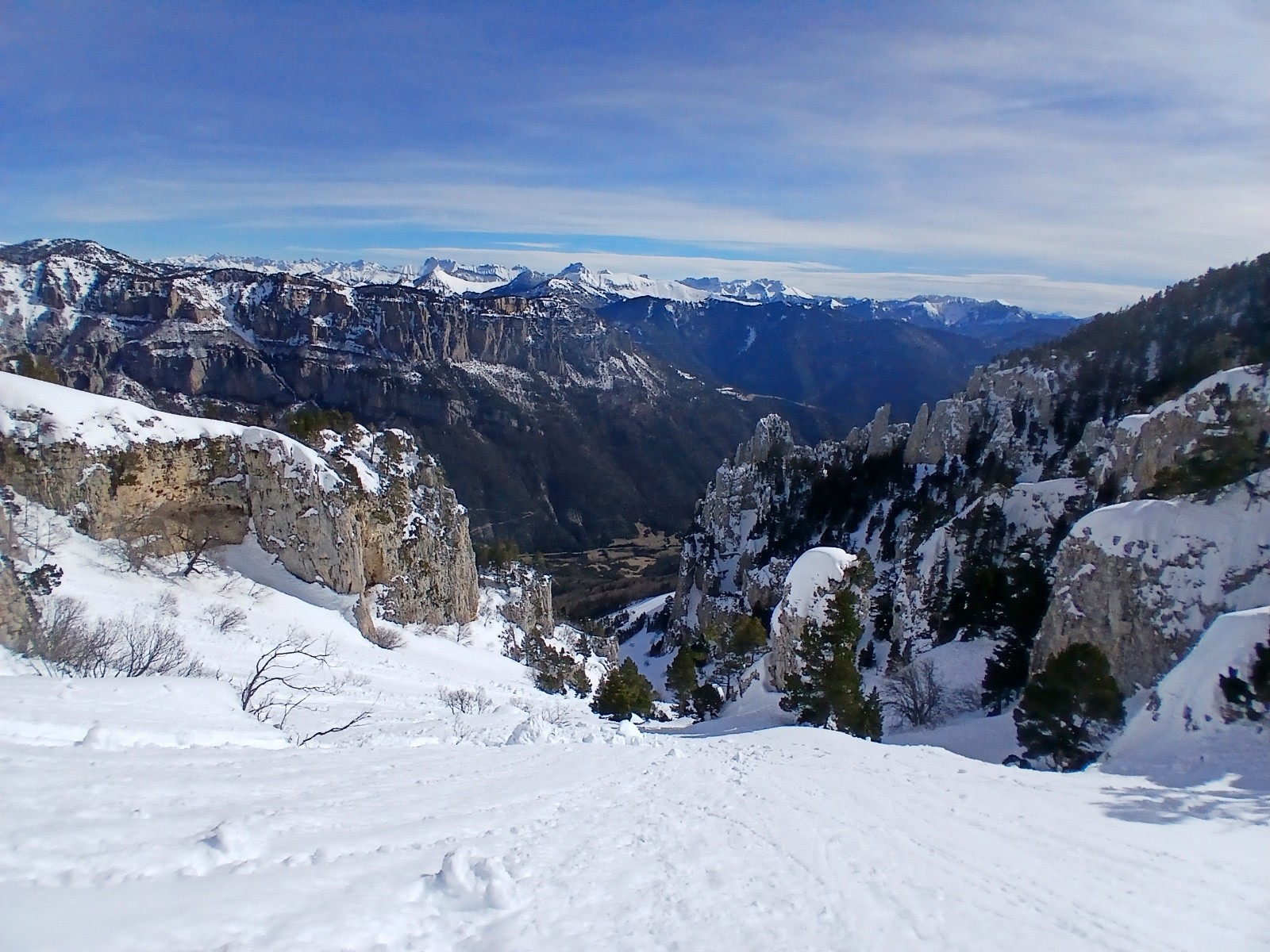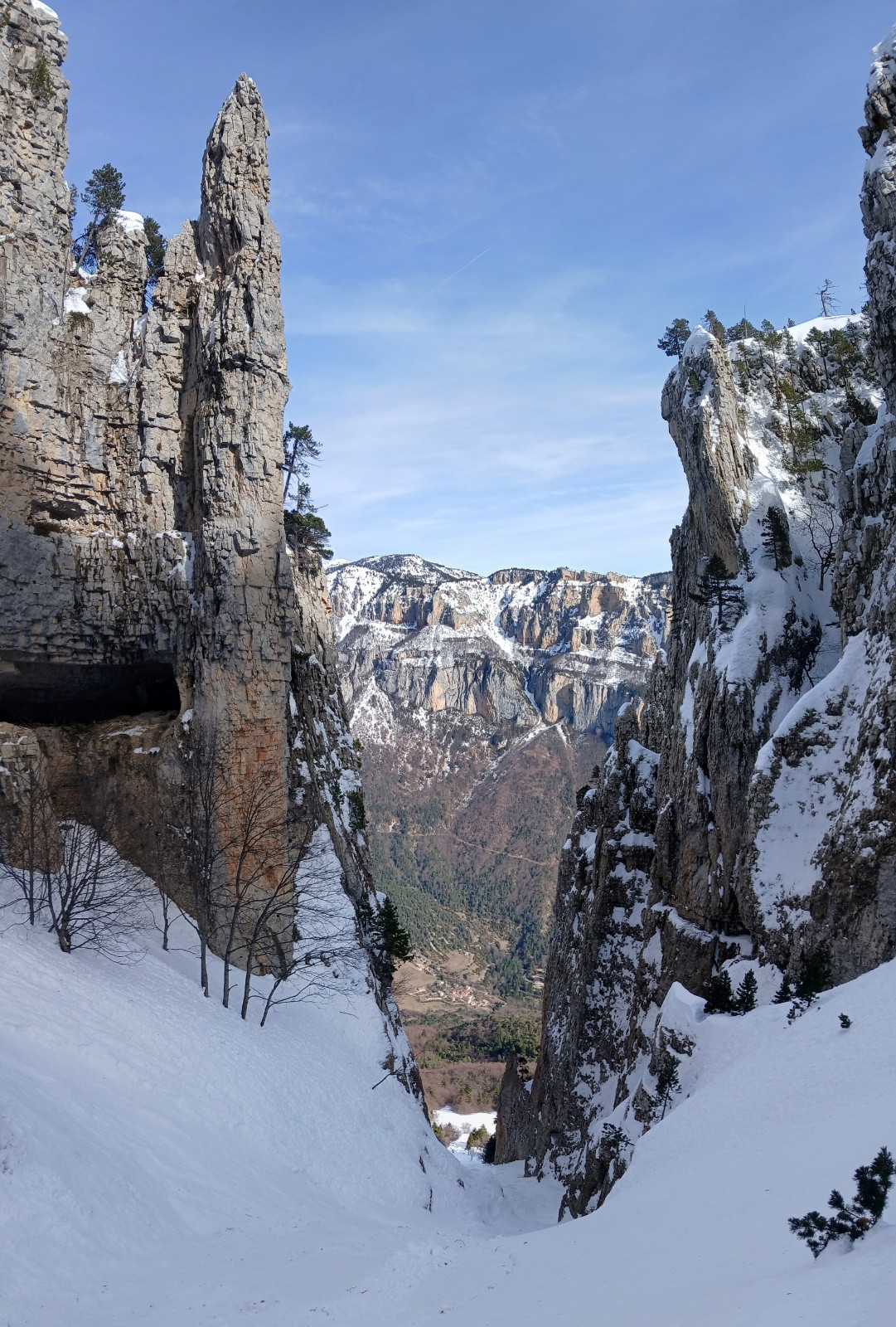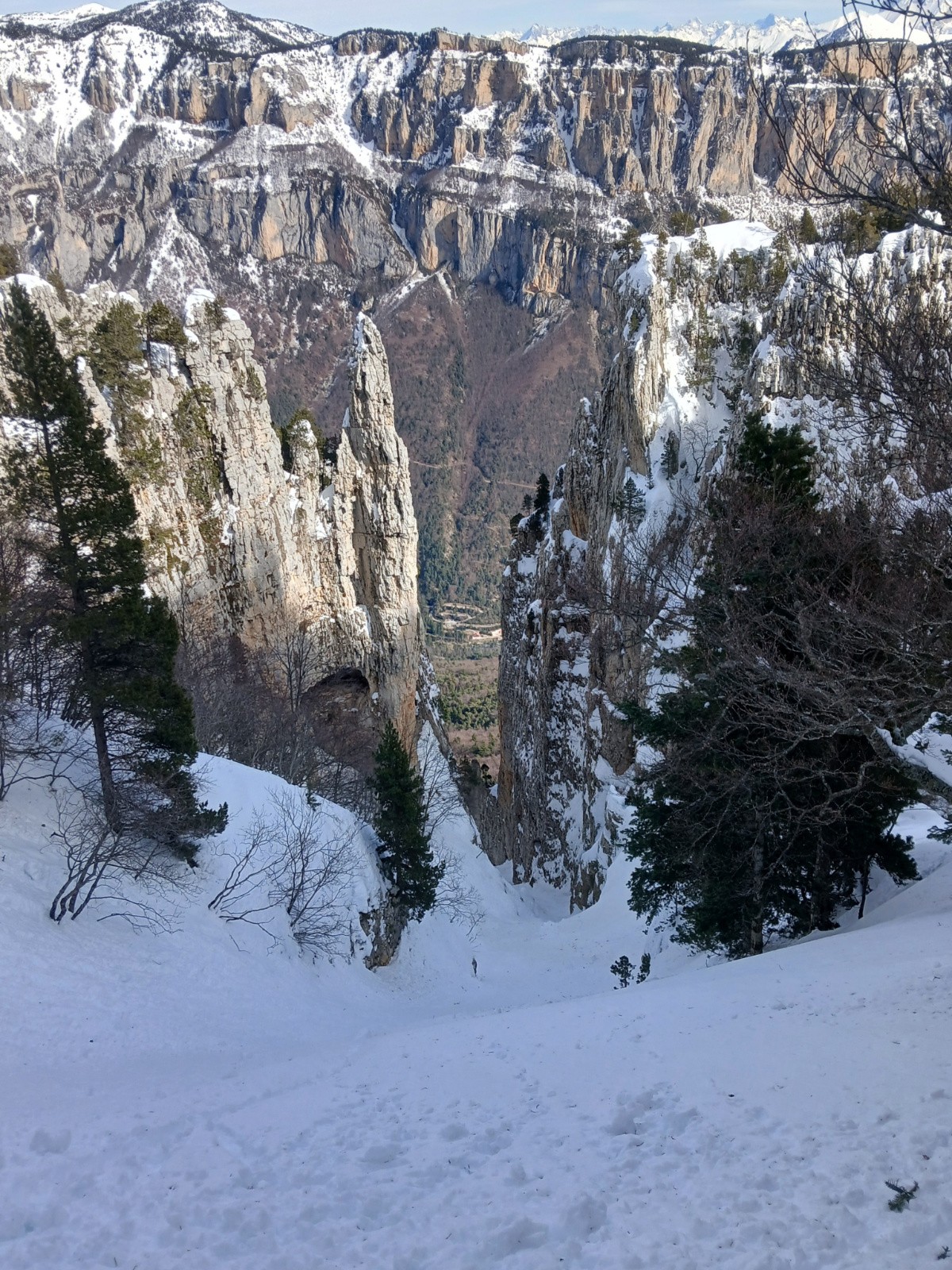 Course à faire les bonnes années, l'ambiance dans le couloir est singulière, on se croirait dans les calanques mais skis aux pieds.