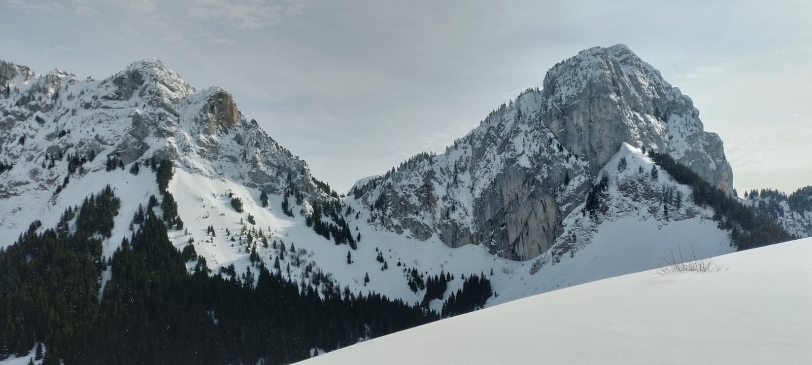 Ca sentait la journée de la loose ce matin , lever tard un peu patraque , temps voilé , pas d'énergie et pas de motiv... Il est déjà 9 h 30, je tourne je vire, Je reluque vite fait la web cam des Glières (j'avais prévu Skating) , c'est la Chine et le Bangladesh réunis !!! Je vais grimper ? c'est gris mais quand même il annonçait beau ! Ca s'ouvre un peu et dans un coin de la baie vitrée de mon salon Sur cou me fait de l'oeil.... Allez je vais quand même pas m'enfermer dans une salle !!! Vu d'ici ça a l'air bien blanc mais j'ai de sérieux doute quand même .. et puis la semaine dans Dévoluy et les conditions pas faciles m'ont laissé un gout de "y en manque un peu "... pour les stats des journées à 600 ! (de quoi faire pâlir Ema42et Glad38 ) ça la fout mal et ça laisse un gout amer ...
