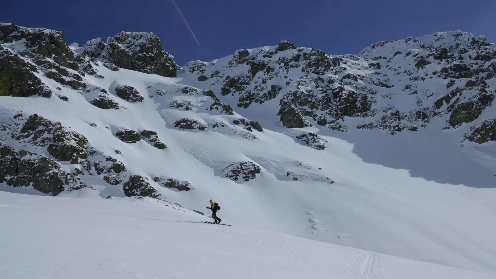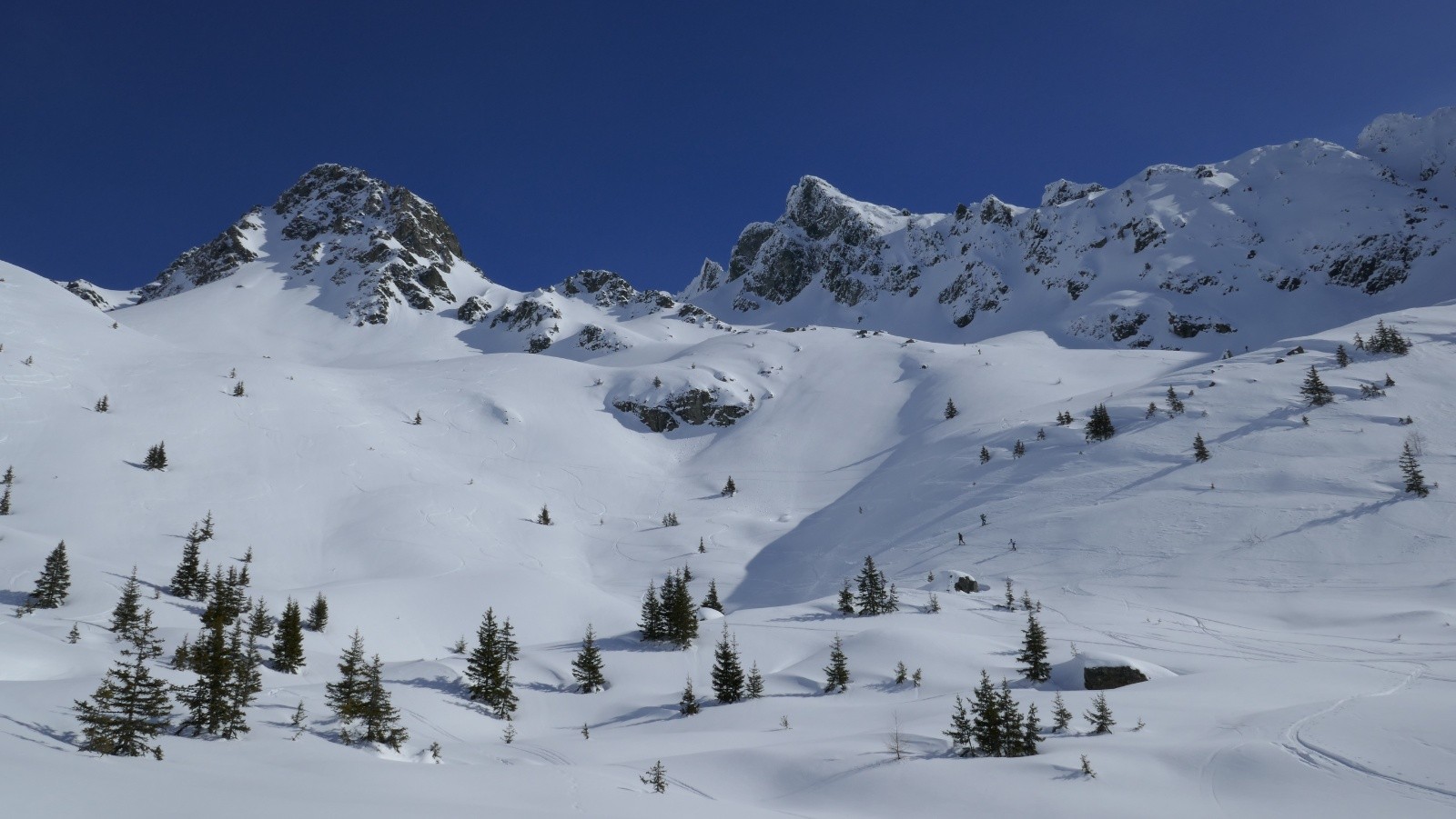 Peu de monde dans le secteur par rapport à l'habitude et beaucoup de pente vierge, c'est bien beau.
