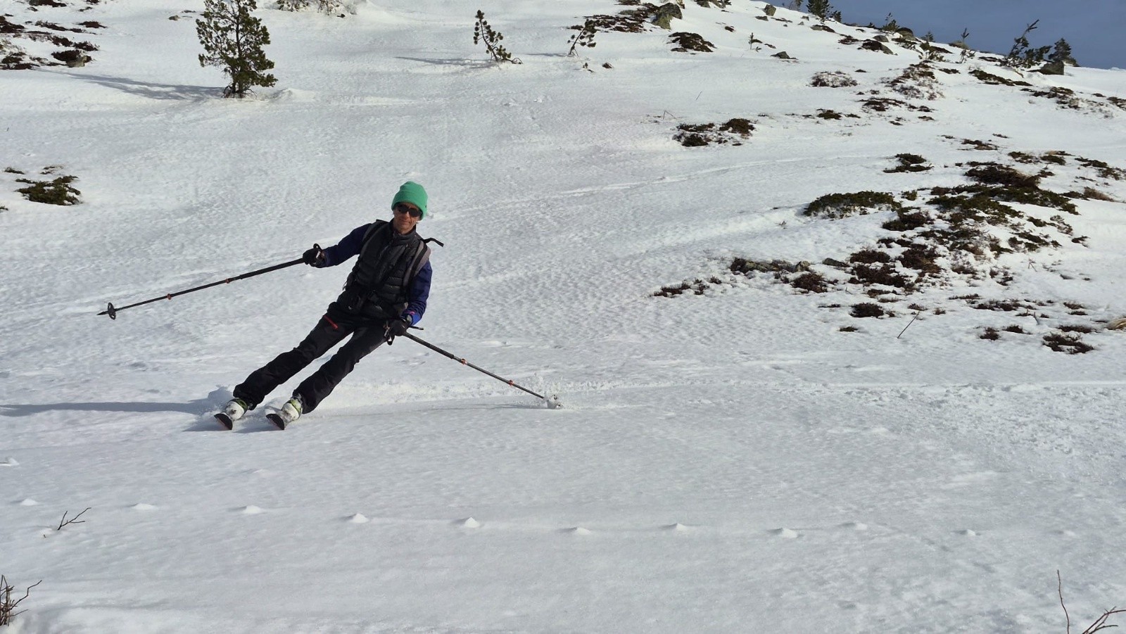 Conditions pour le ski : Conditions printanières. Les pentes nord sont restées dures.