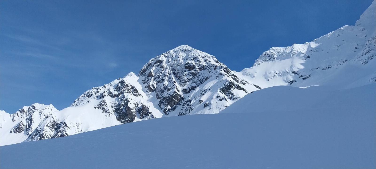 On continue, la neige est bien croûtée et ça commence à botter dans la trace de la veille. Quand je suis contrarié j'ai tendance à me mettre à mon rythme sans le vouloir, me voilà maintenant tout seul devant. Être au rythme des autres ne me dérange pas mais je n'aime pas attendre donc je décide de suivre la trace qui monte à la montagne de Tigneux pour faire une première petite descente😋. Je me fais bien punir avec un bottage de l'enfer dont je n'ai pas réussi à me défaire jusqu'en haut. Heureusement la vue vaut largement le petit détour. La descente a été plutôt réussie, je m'attendais à du croûté finalement c'était de la neige dure à la limite de la moquette car je ne passais pas à travers👌.