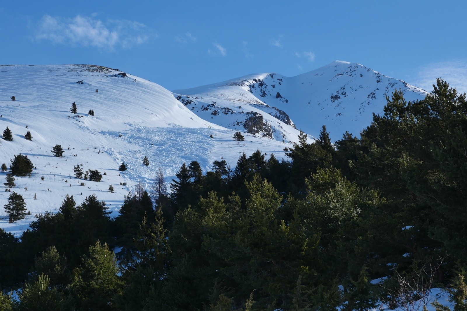 Conditions nivo et activité avalancheuse : Une purge assez conséquente, avec une cassure de plus de 1m, est partie d'une petite contrepente sud ouest et a parcouru plusieurs centaines de mètres dans des zones pourtant peu raides. Elle date probablement de vendredi matin car une petite couche de neige fraiche était présente sur les blocs.
