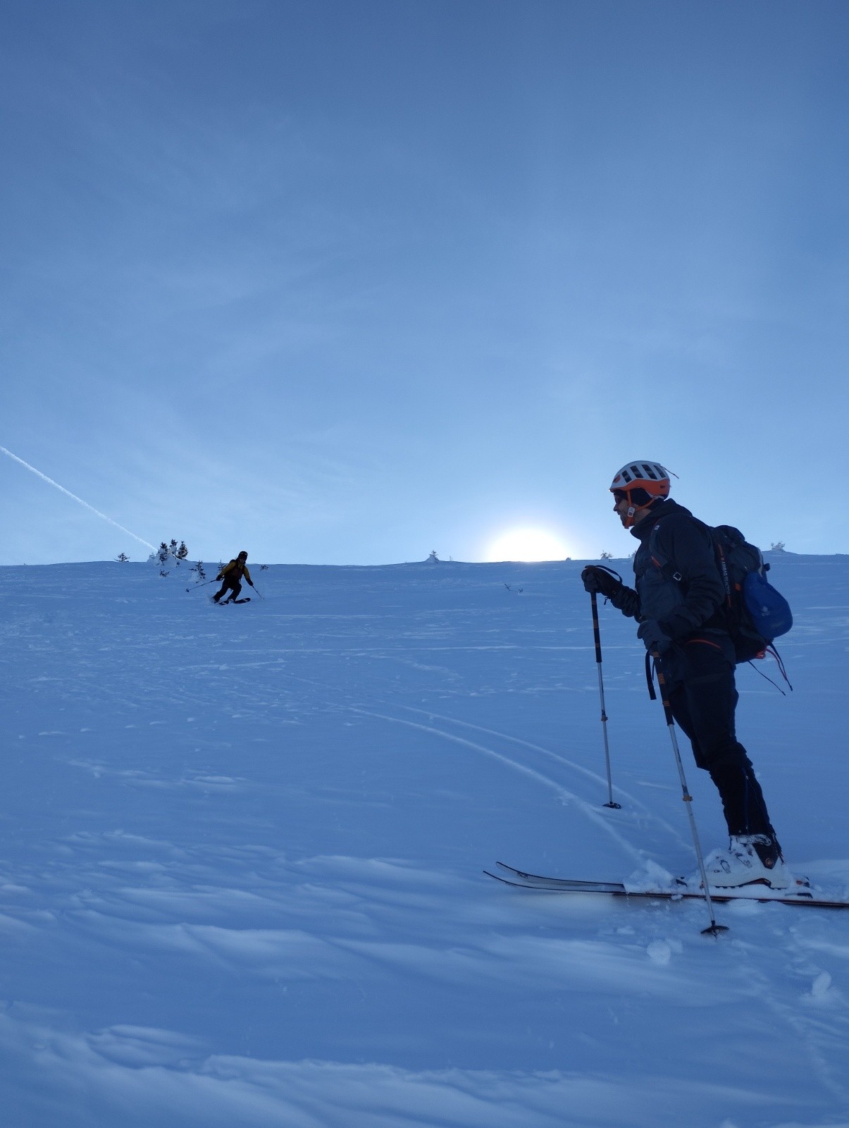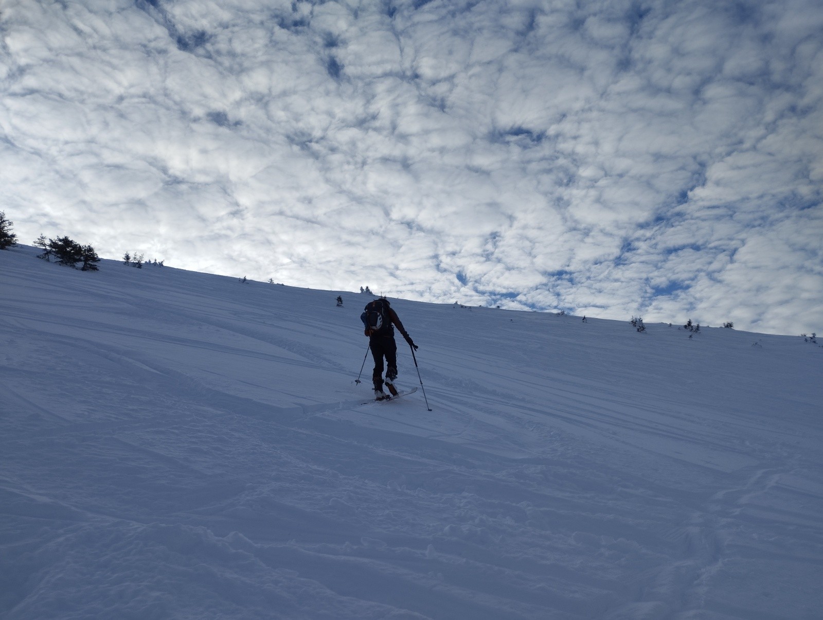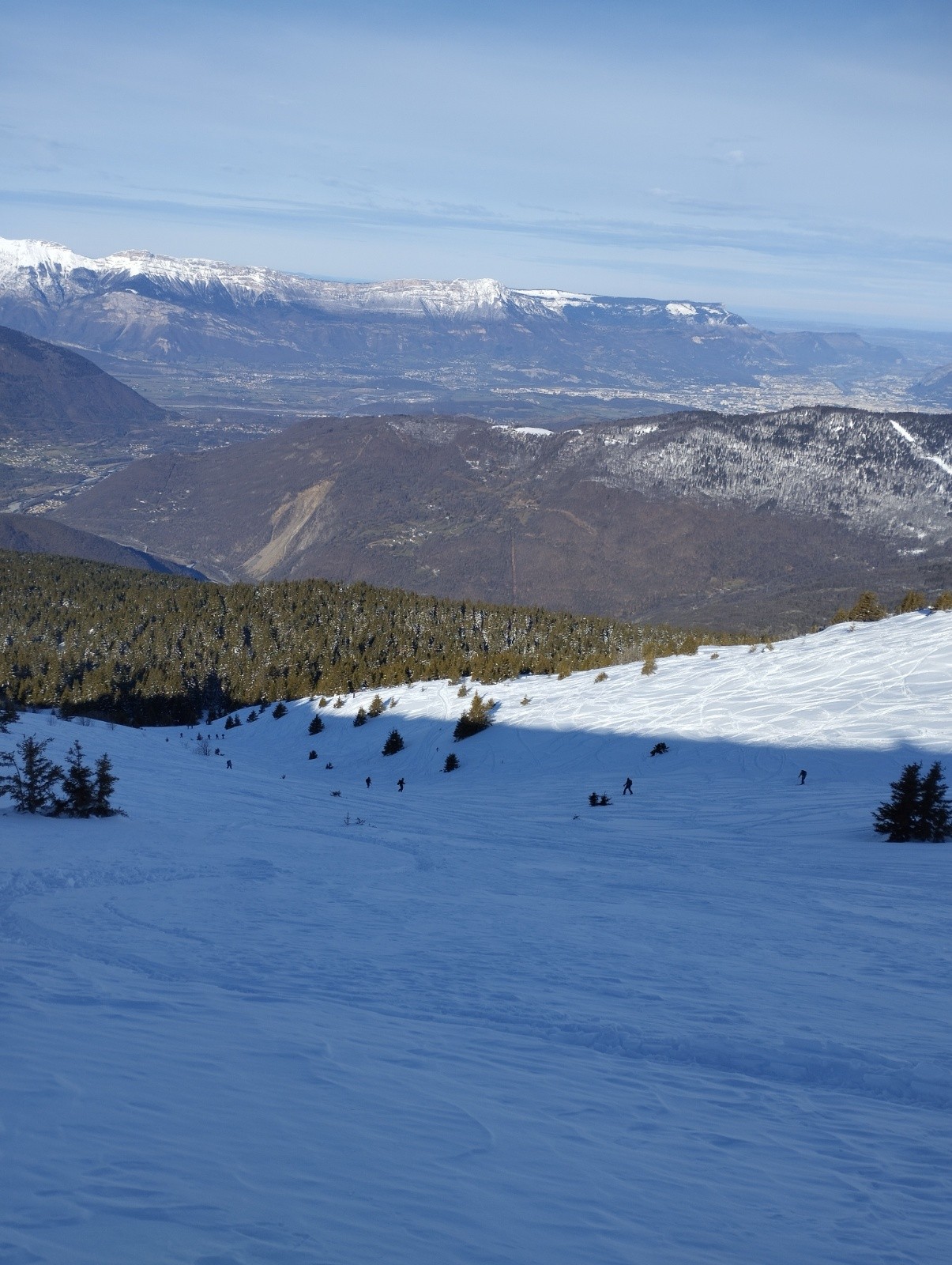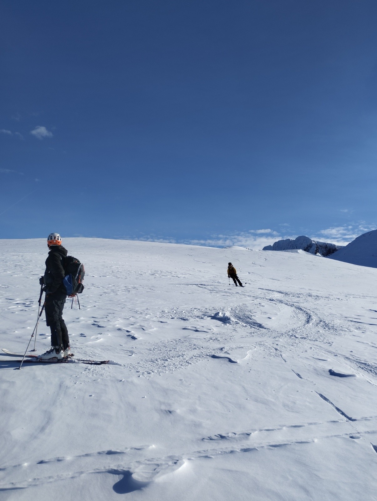 Conditions pour le ski : grosses quantités. Très bonne neige sur le haut, dans le champ plus bas c'est poudreux en NW mais tout traffole donc neige changeante, pas évident à skier