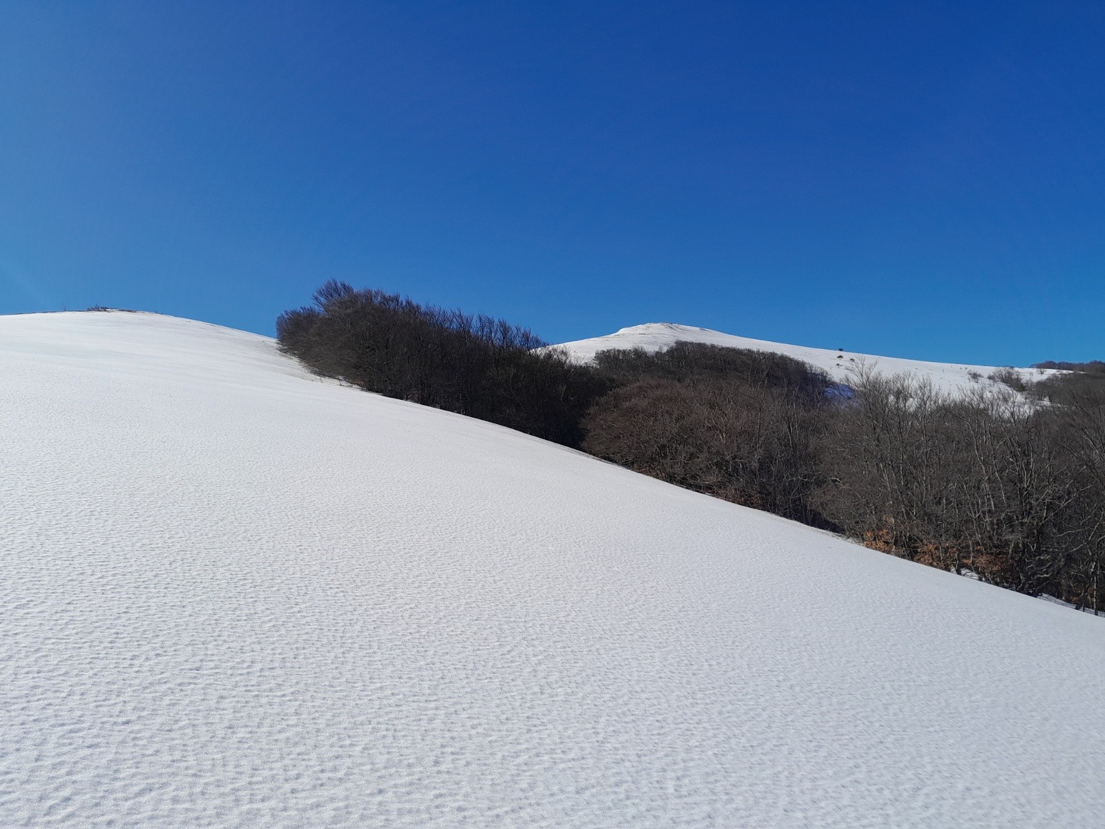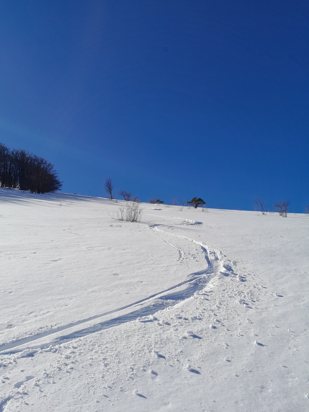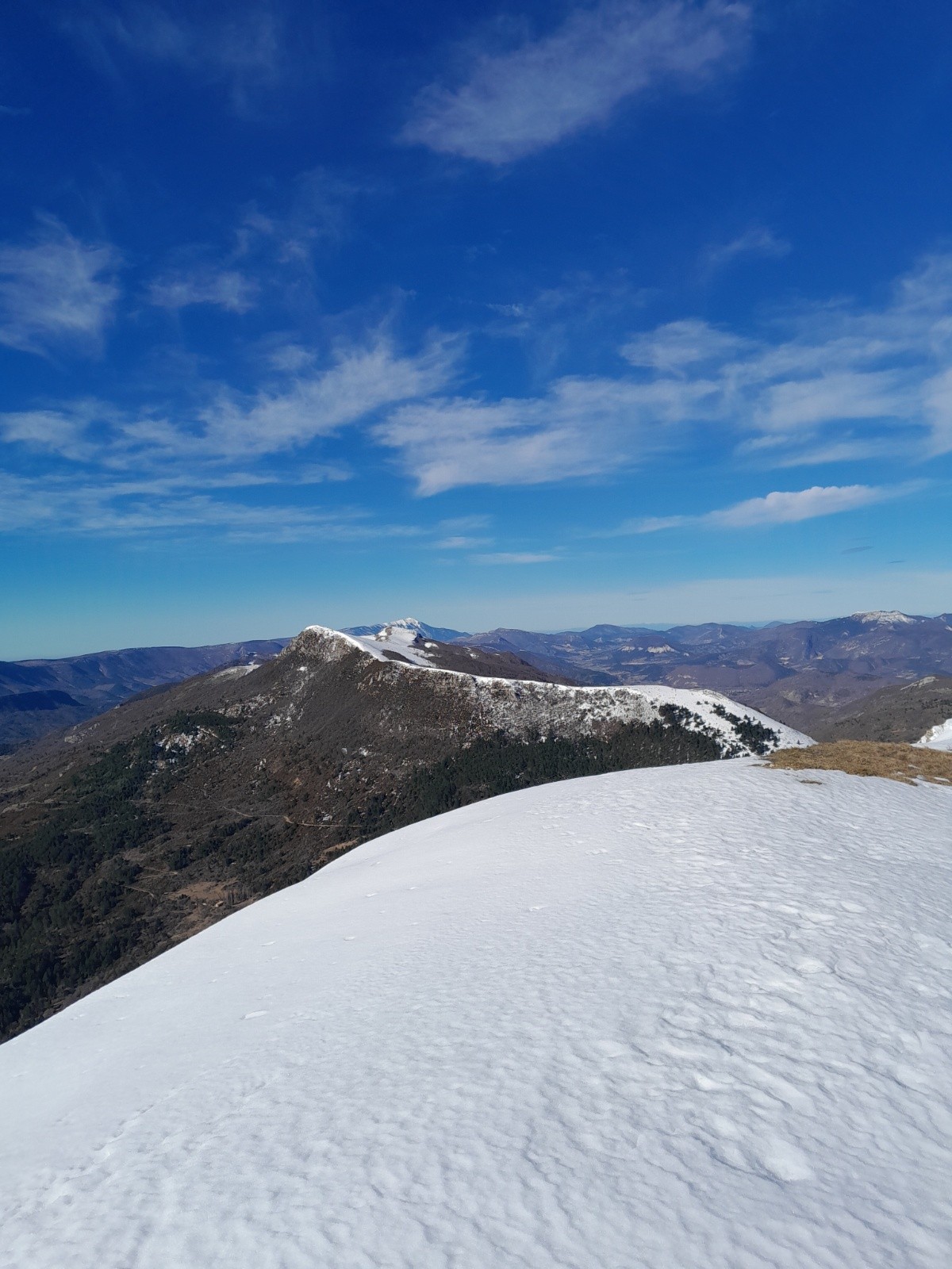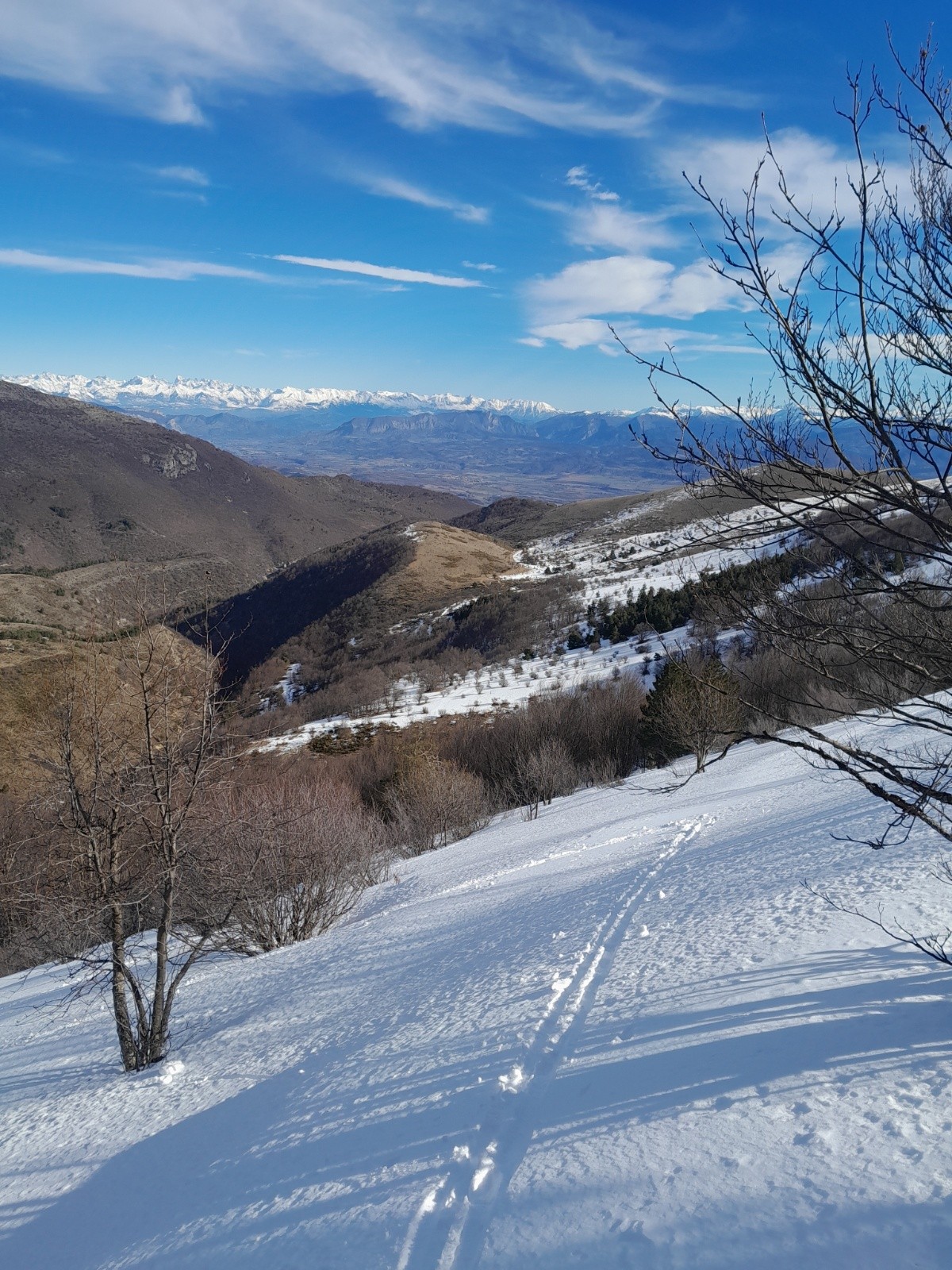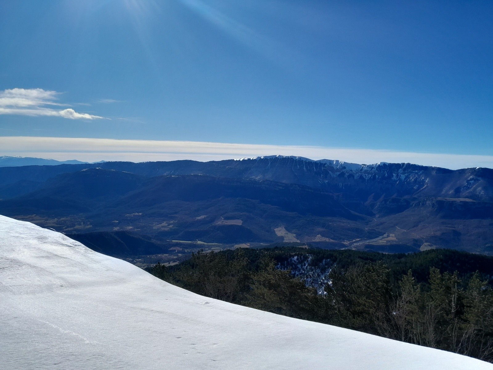Conditions pour le ski : bonne. Neige de printemps ou dure selon l'orientation. Parfois de la poudre dense dans les micro-vallons à l'abri. Quelques sections de neige pourrie / croûtée.