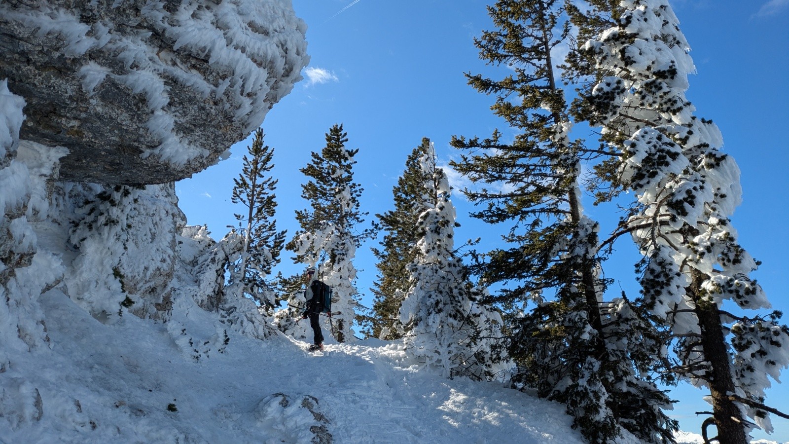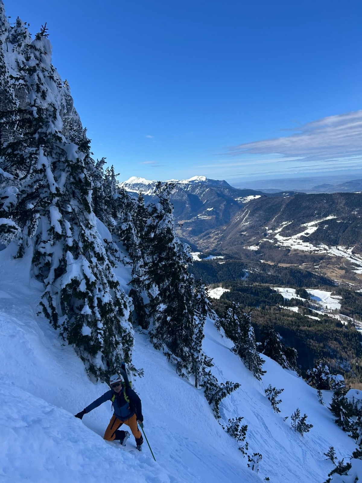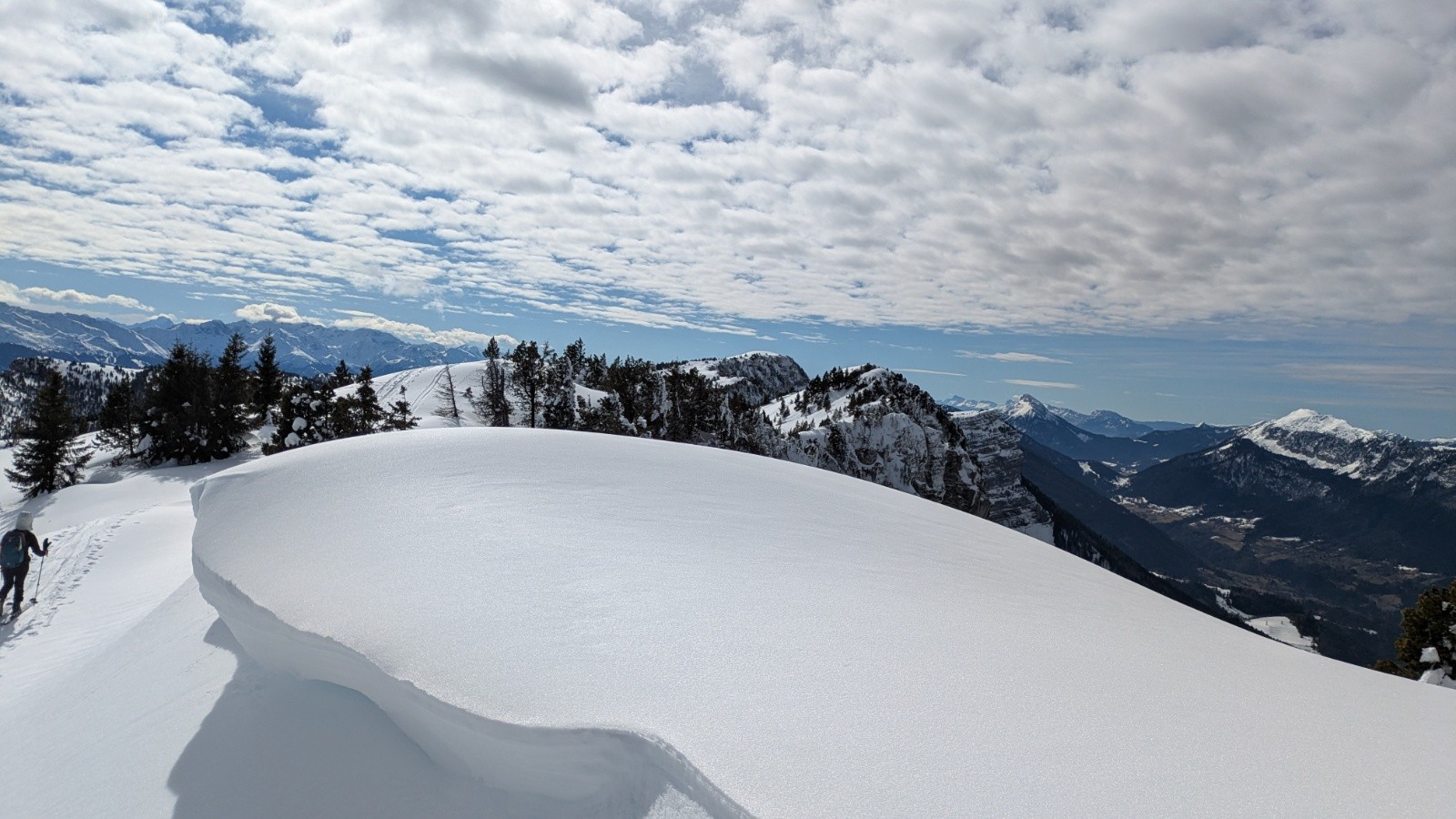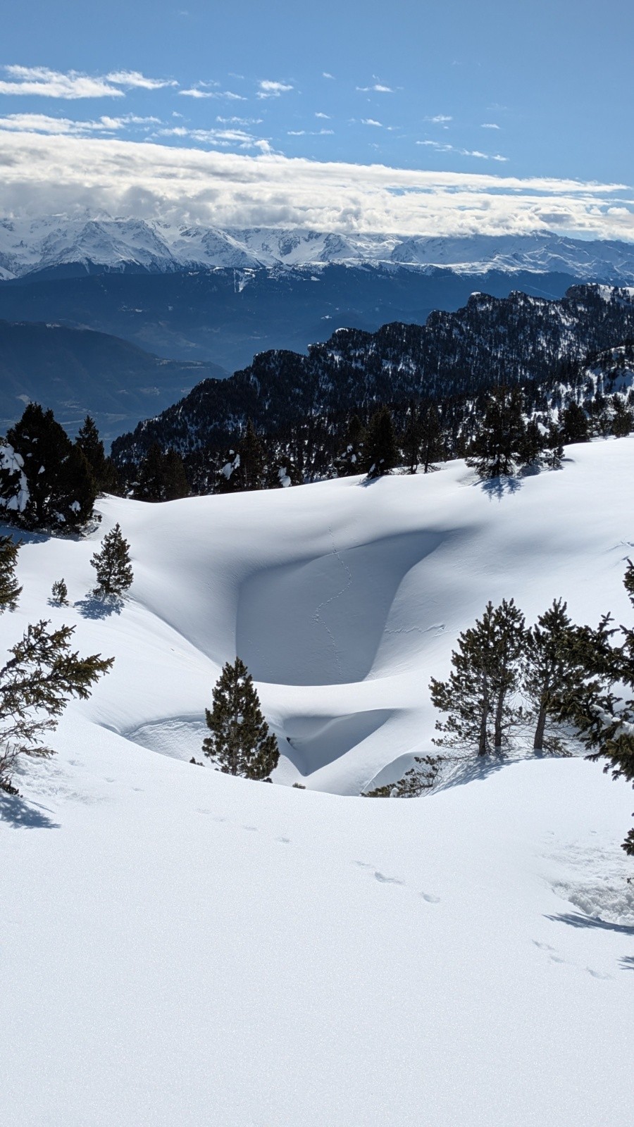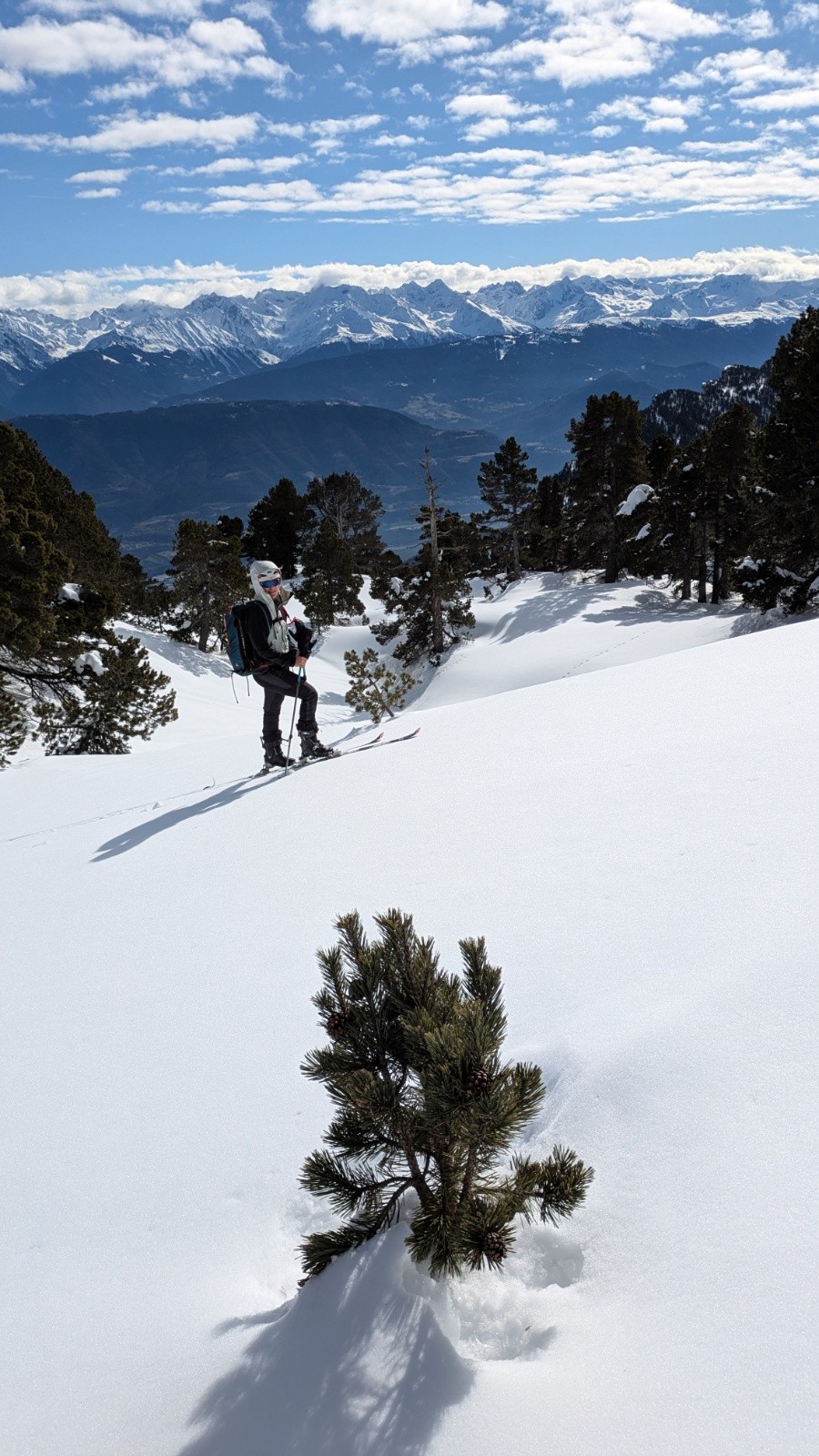 Conditions pour le ski : trace zippante à la montée. Belle transfo juste au bon moment (12h00) pour la petite incursion en Est. Dure et lustrée par les passages obligatoire dans les barres. Transfo molle avec beaucoup de boules mais restant skiante vers 13h00 sous les barres.