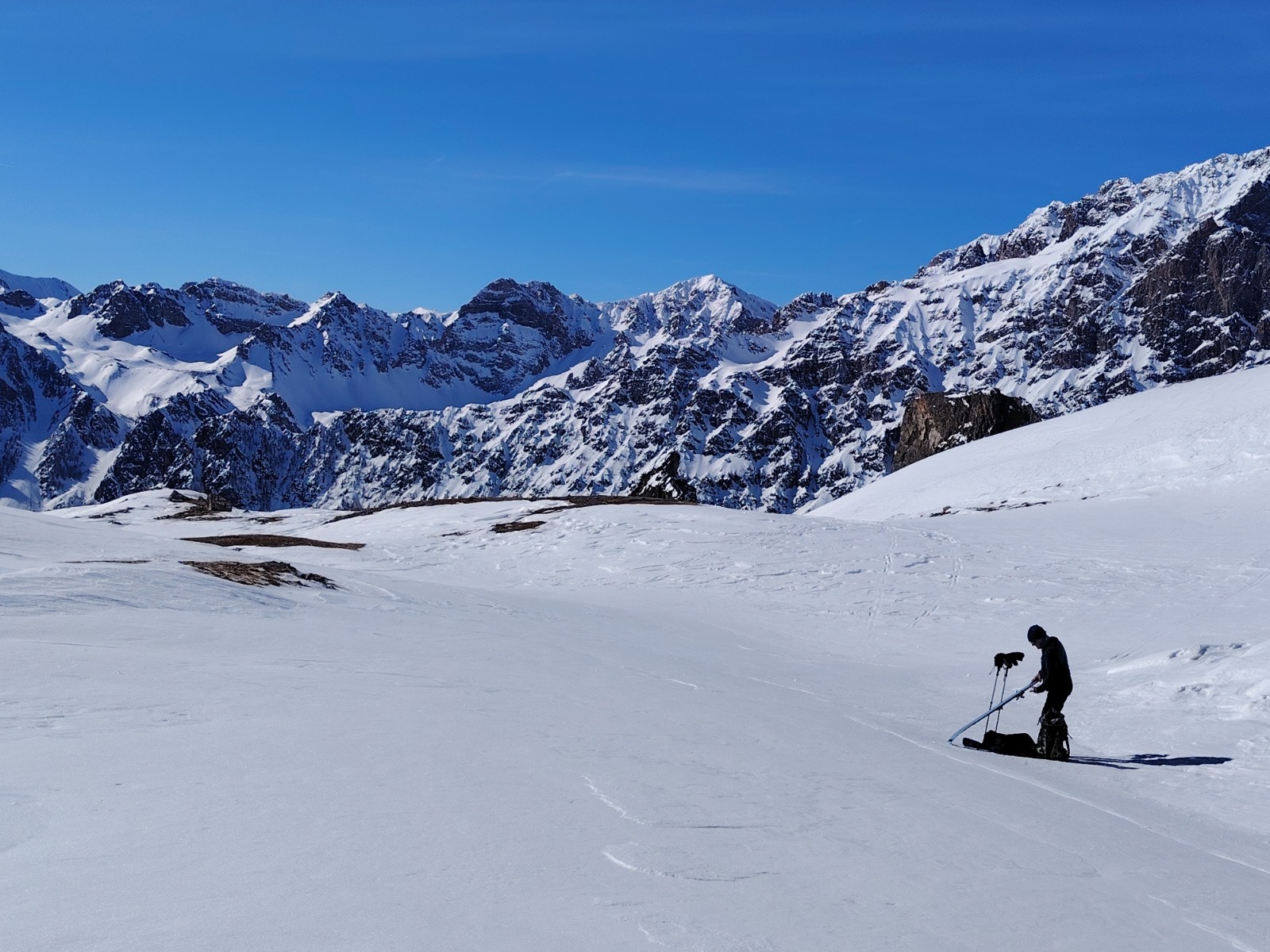 Conditions pour le ski : juste limite. Cailloux affleurants, neige très très lourde. Ski de printemps. Pas de regel nocturne, ou presque pas