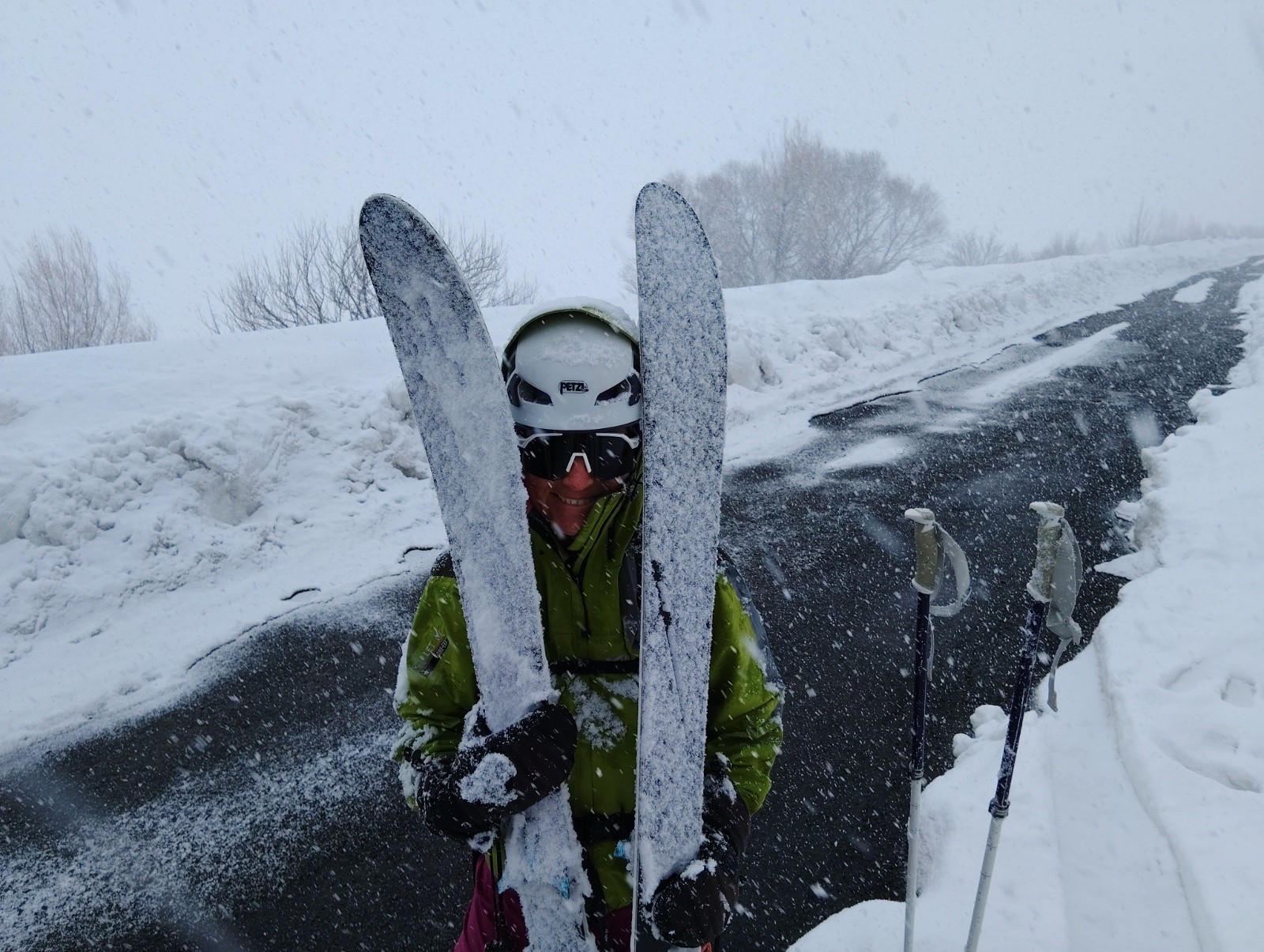 Météo/températures : neige, temps bouché, averses. Zéro au parking, pas de vent