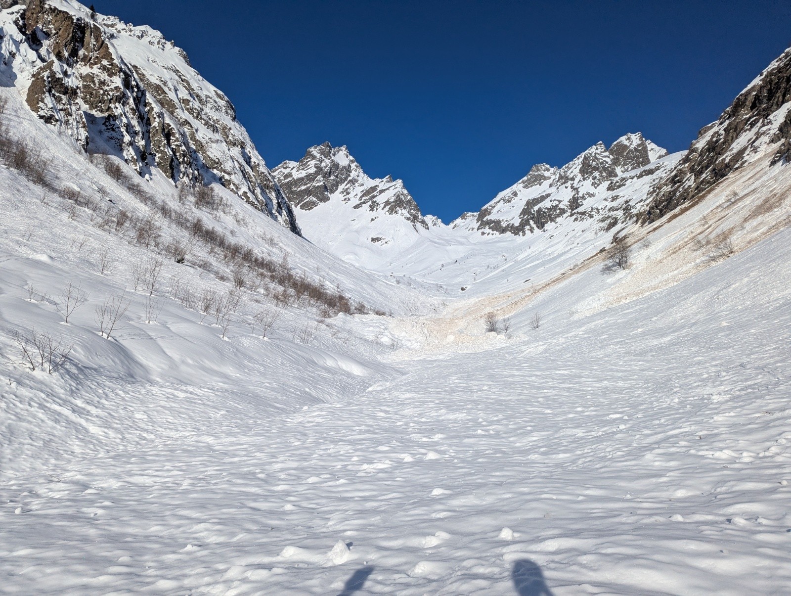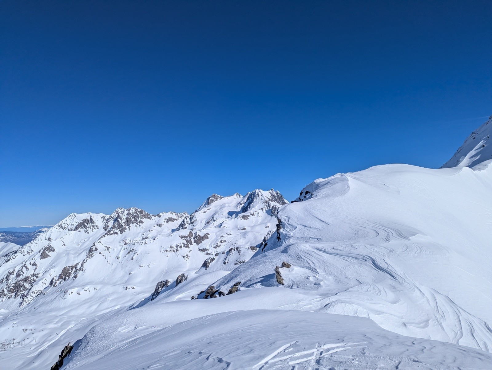 Conditions pour le ski : il fait chaud à la montée et à la descente, la neige est bonne de 2400 à 2000m en descente puis elle devient extrêmement lourde (11h30) en dessous, bcp moins fun