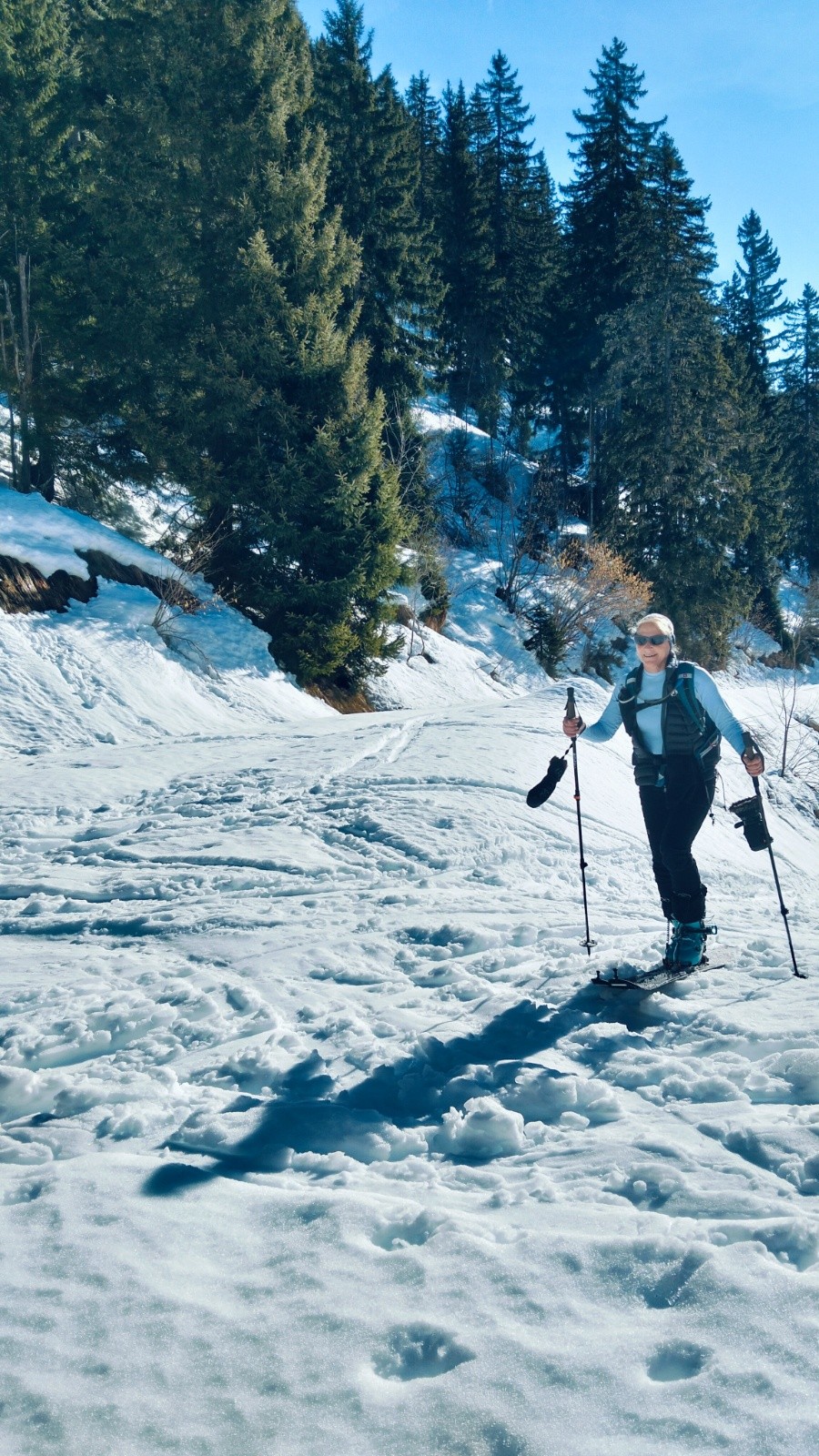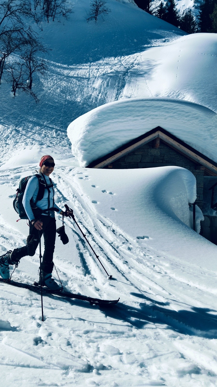Courte descente en gardant les peaux pour rejoindre les pentes du col de la Lavoire.