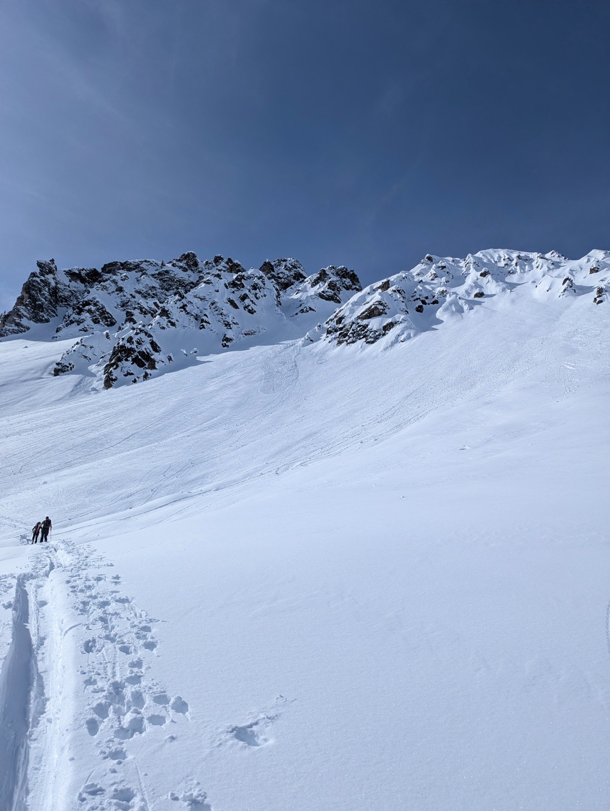 Conditions nivo et activité avalancheuse : quelques escargots au soleil vers Fenêtre, des queues de baleine sur les pentes exposées soleil. la chaleur fait purger..