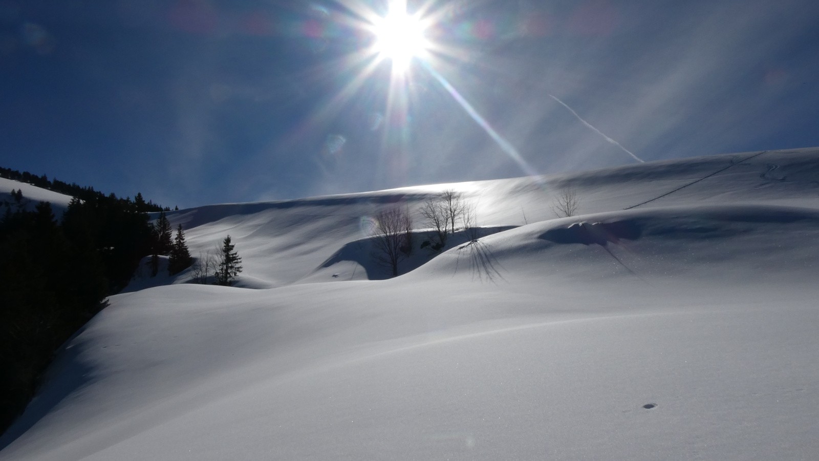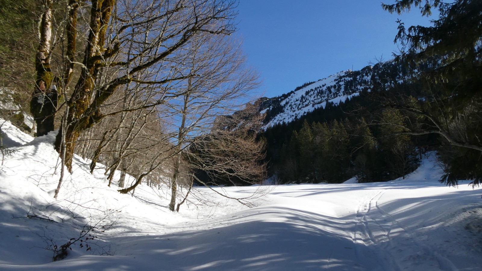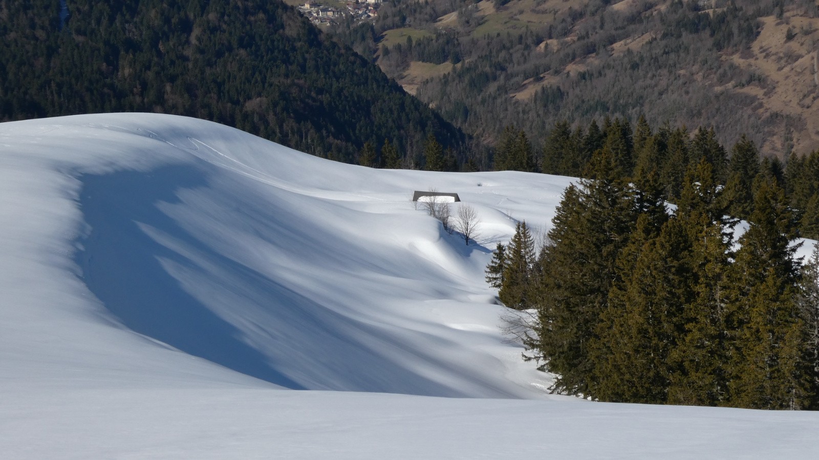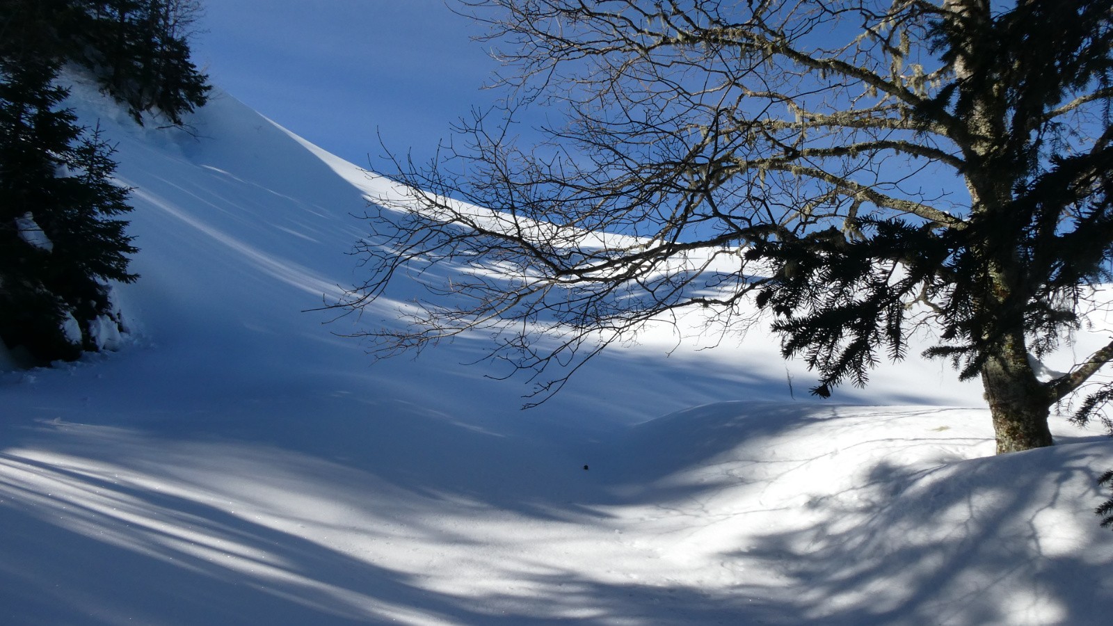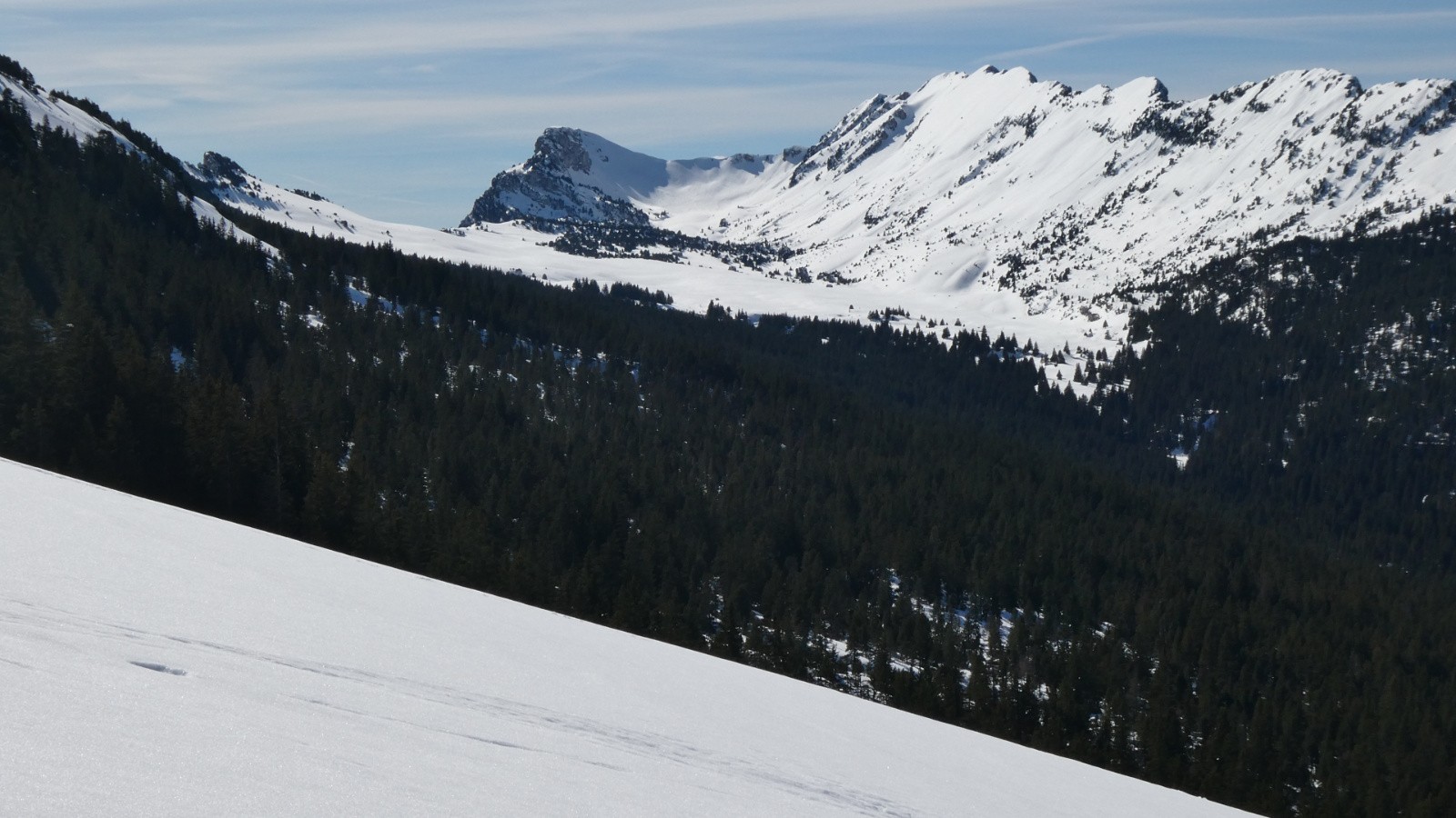 - la traversée de Pratcel à l'Alpettaz a été un pur bonheur : neige absolument vierge et portante ; en suivant les traces d'un renard, j'étais sûre d'être sur le sentier, l'enneigement étant fabuleux, on ne touche absolument rien