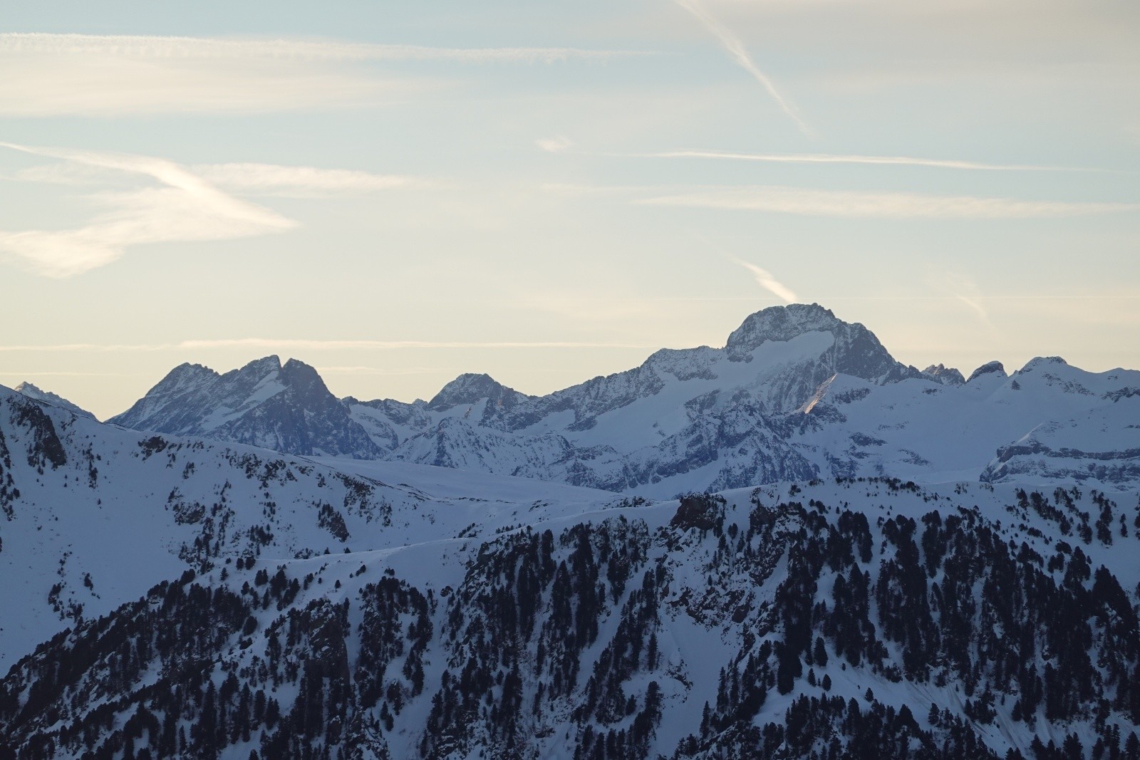 Malgré la température élevée et bien que le ciel soit clair, la neige a gelée en surface me contraignant à monter droit dans le pentu, m’évitant de sortir les couteaux pris par précaution.