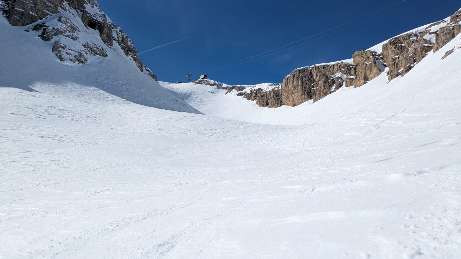 - combe ratin entre moquette sur la partir orientée est et vieille poudreuse sur ce qui ne voit pas le soleil
