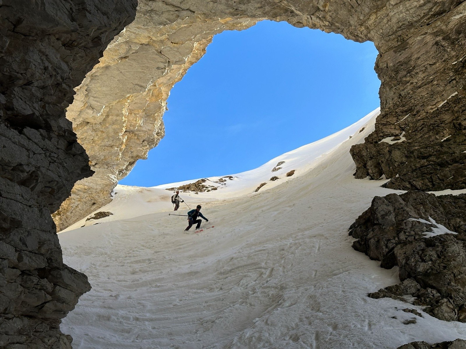 On est trop tenté d'aller voir le traversée héroïque en redescendant. C'est tellement bien rempli qu'on peut la skier à la descente, je pensais pas que c'était envisageable !