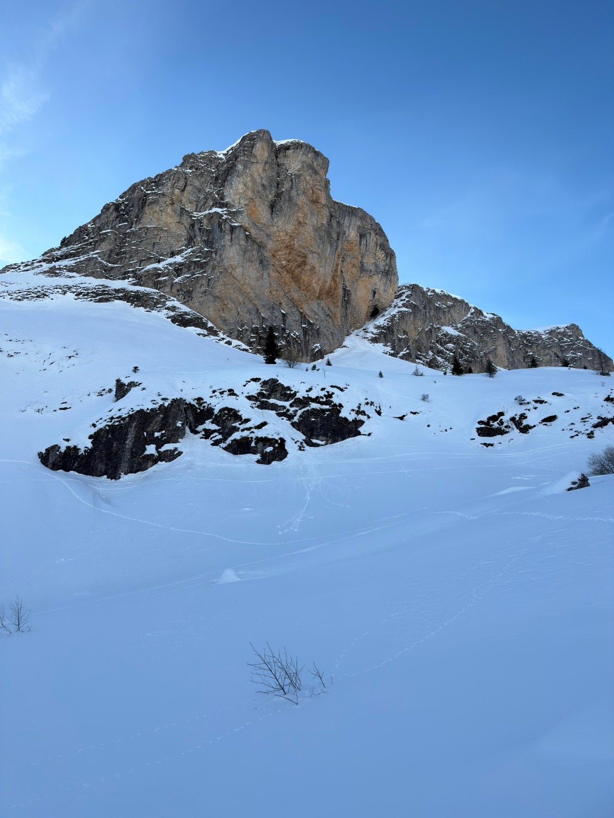Les traces de la veille n'ont pas bien regelé (surtout dans la grotte) donc leur intérêt est somme toute limité. Ca donne une idée du chemin à suivre, c'est déjà ça!