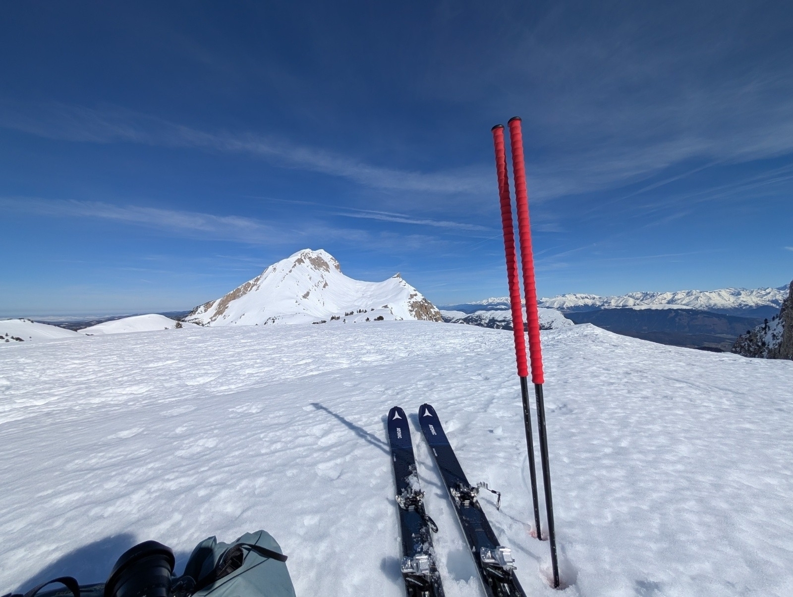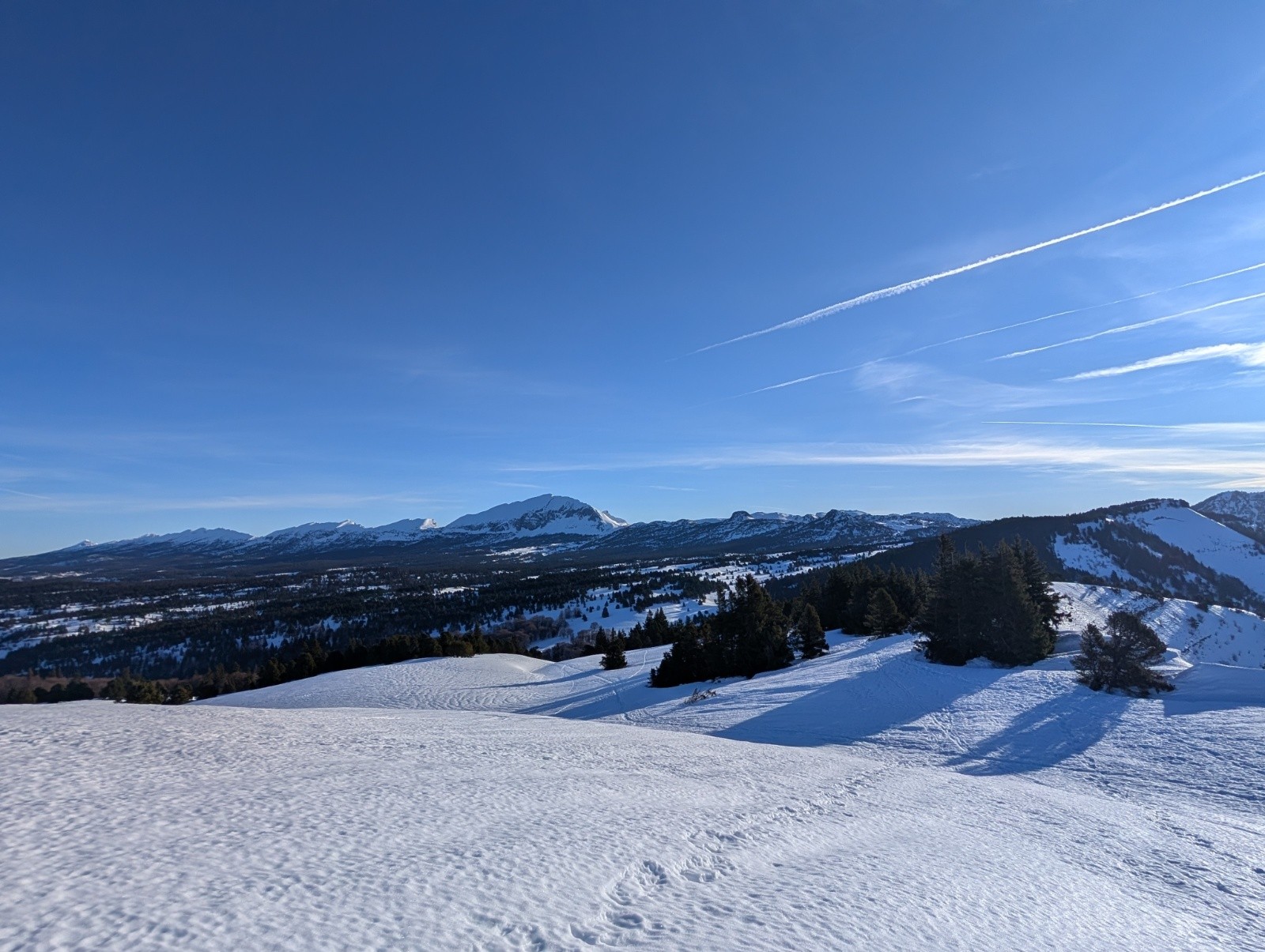 Conditions nivo et activité avalancheuse : A peine regelé cette nuit neige lourde, de gros coup de frein en descente même sur les pistes. Un peu meilleur au dessus de 1800 m, moquette lourde. RAS sur ce trajet coté avalanche, il faut dire qu'il y a pas de pentes au dessus de 30°. Des petites coulées sur la face au soleil du Grand Veymont.