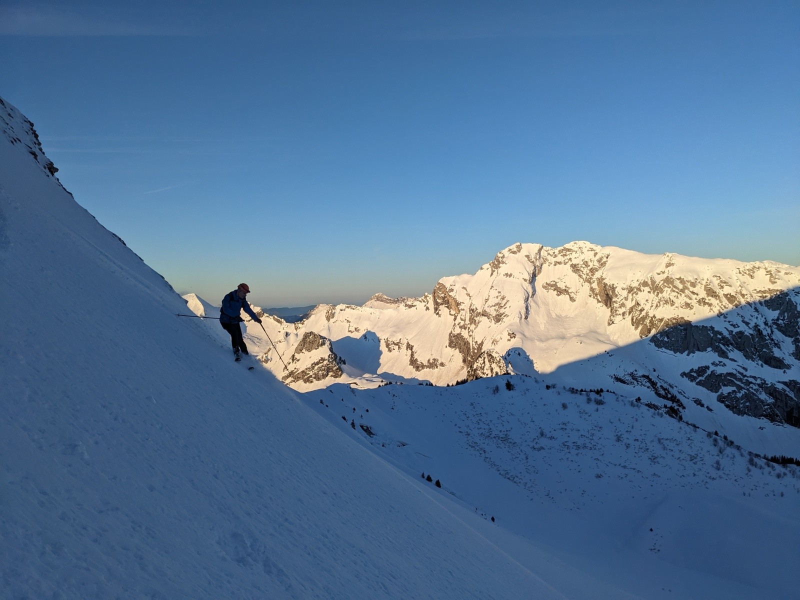 Bonne surprise pour le début de la descente, les premiers virages sont excellents et le remplissage aussi ça permet de skier pleine pente au lieu de la rive droite habituelle bien chouette.