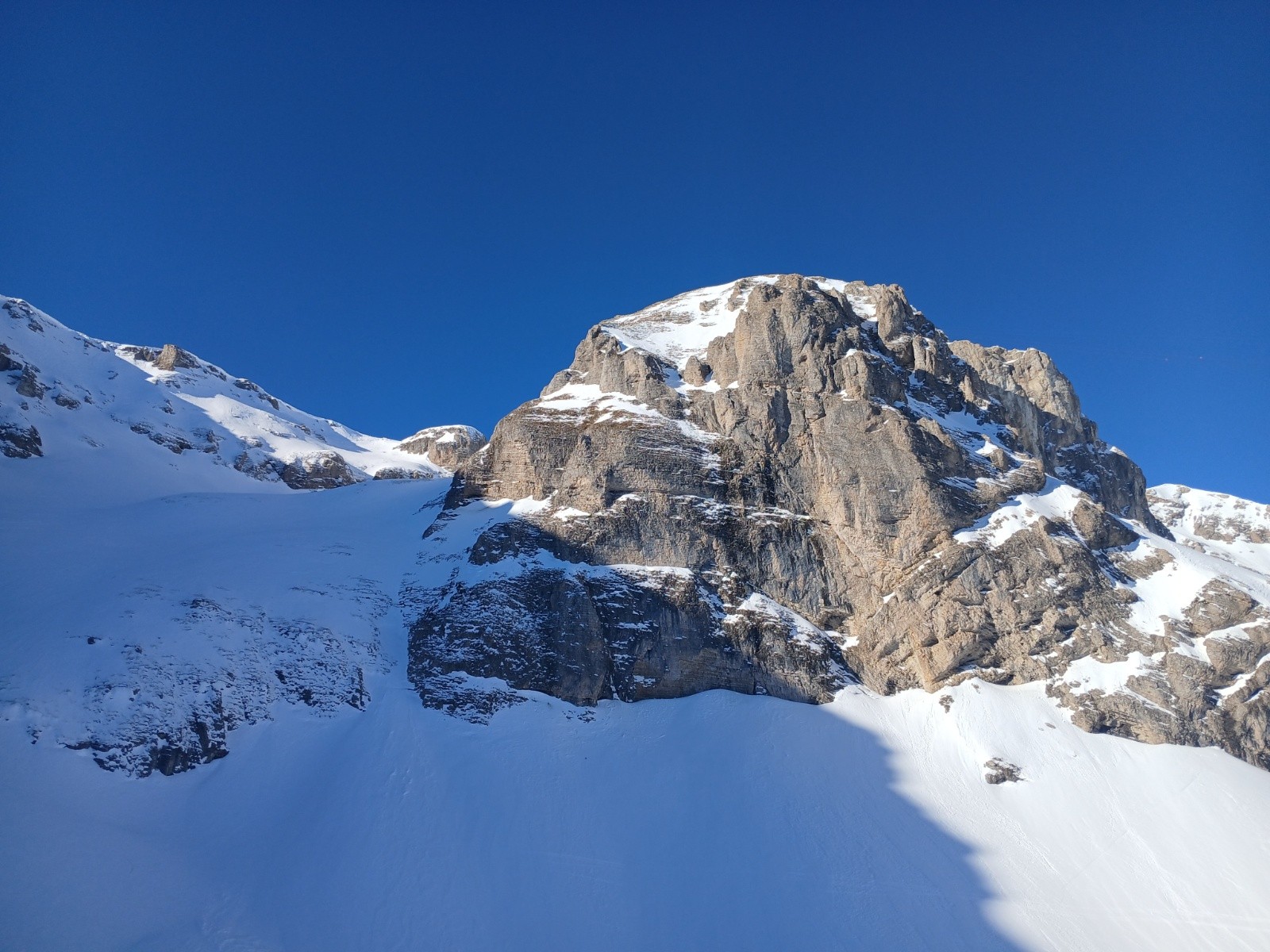 Conditions pour le ski : bonne dans l ensemble, suivant l orientation, poudre tassée à neige de printemps en passant par cartonnée