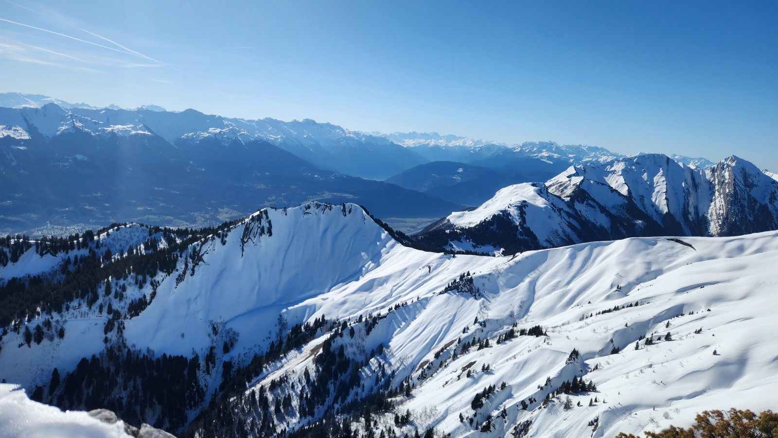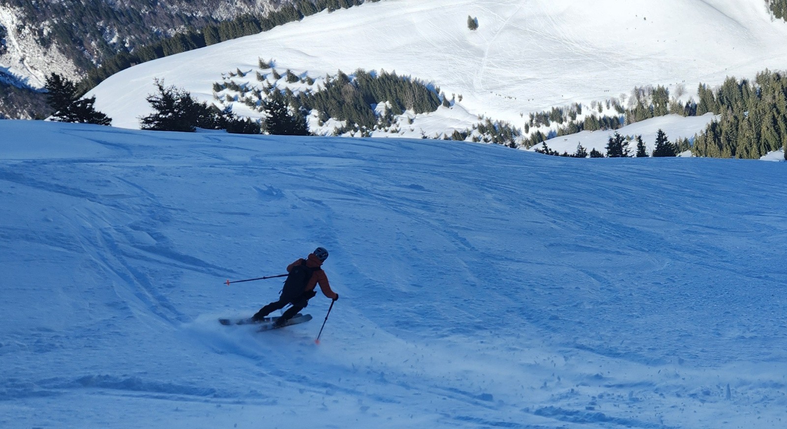 Conditions pour le ski : Pour résumé de tout. Dans le détail, de la poudre tassée en nord, de la croute en Ouest évitable, de la moquette poil long en Sud