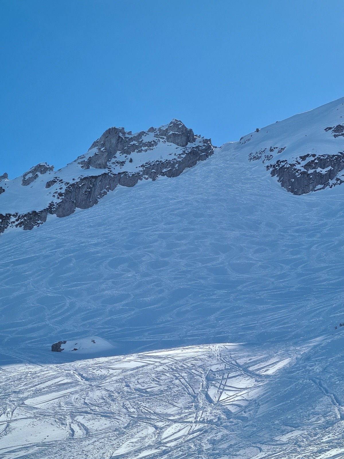 Conditions nivo et activité avalancheuse : OK. Attention dans le Col de la sambuy, escargots présents. Attention aux plaques dans la montée de la grande sambuy.