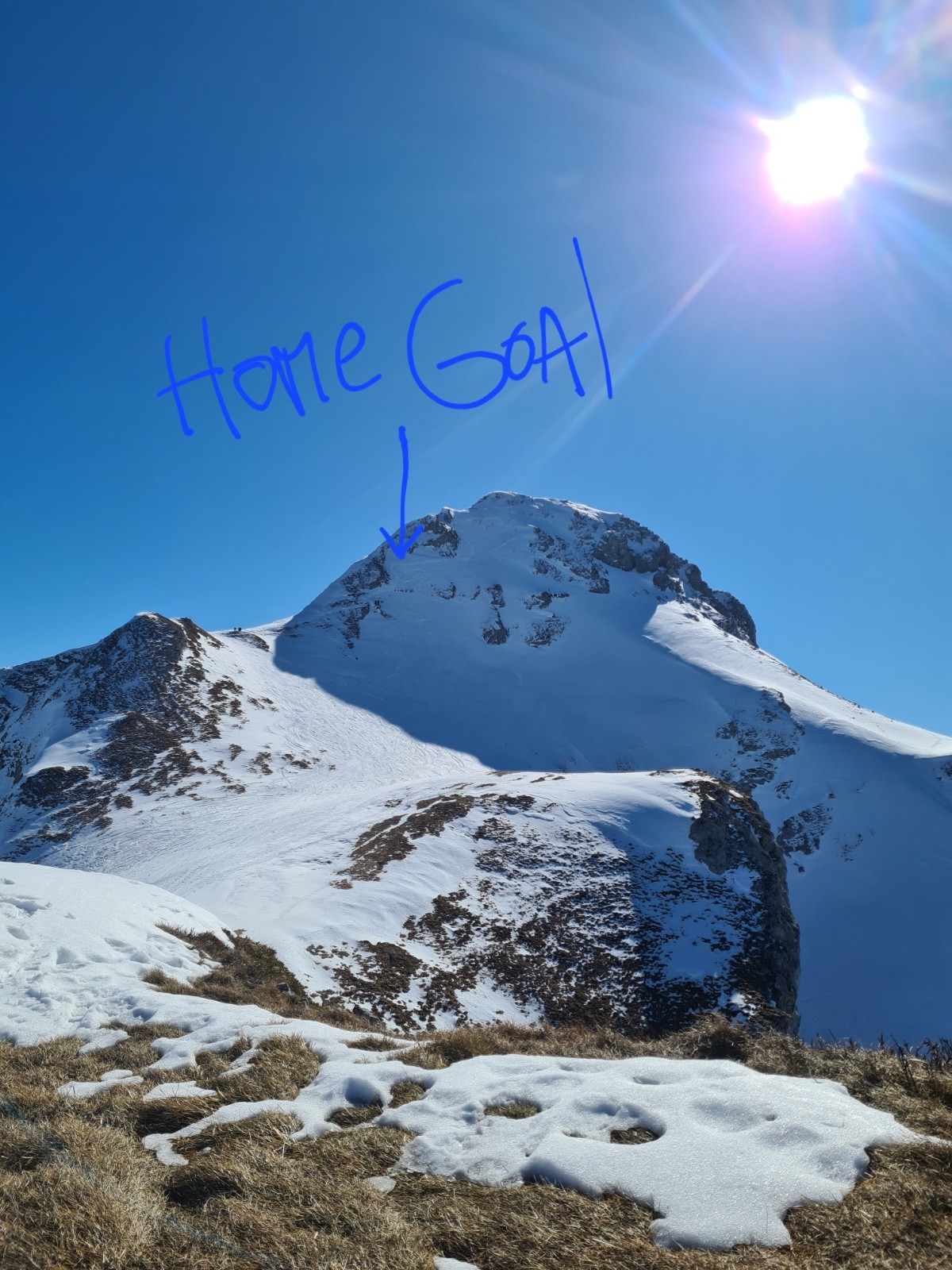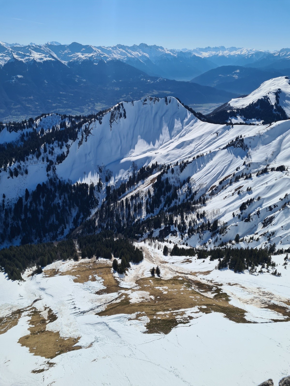 Conditions pour le ski : Croutasse et glacée pour la montée par la piste / J'ai attendu que ça transforme pour descendre par "l'avalanche". Suuuuuuper poudre pour le petit couloir (brèche 2080m) à l'Est de la grande sambuy. La c'était plaisir !