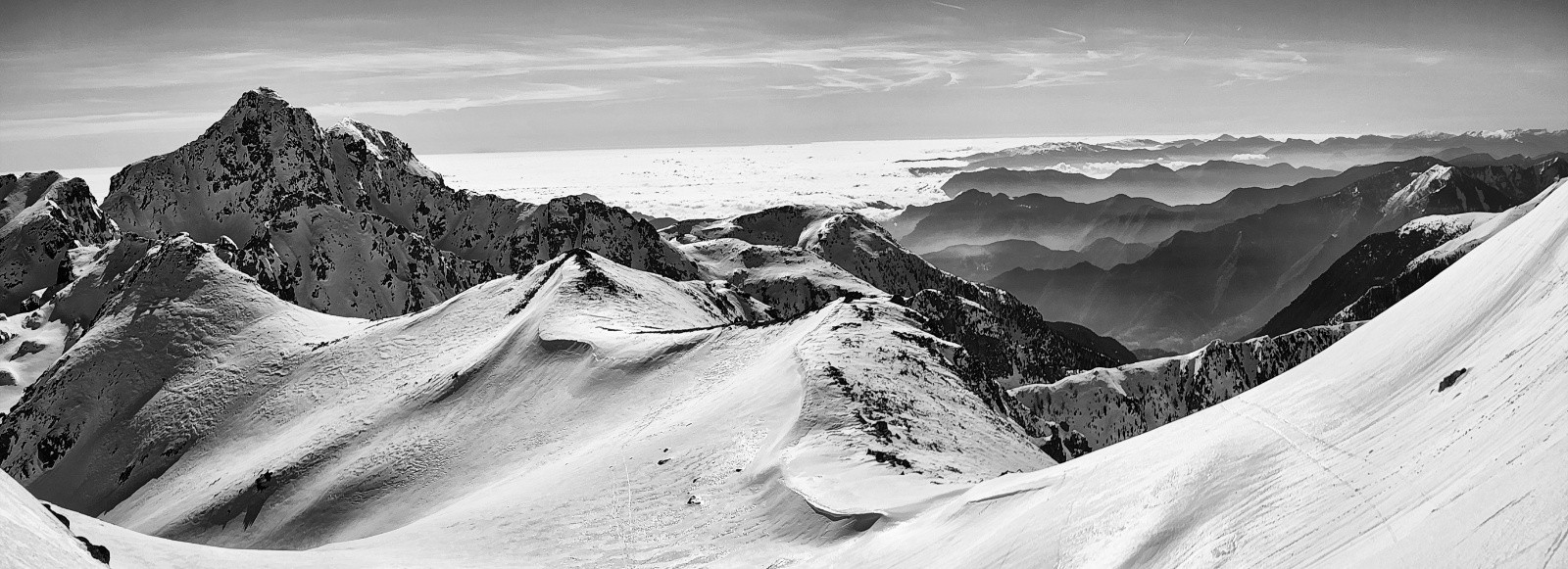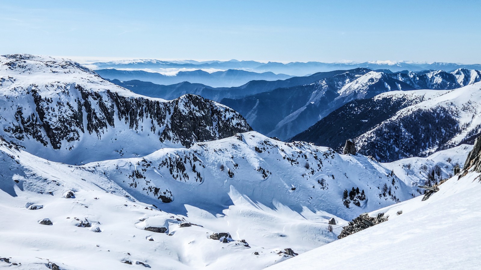 Paysages grandioses, sur les plus hauts sommets du Mercantour, le Vallée des Merveilles et la Corse au dessus de la mer de nuage !