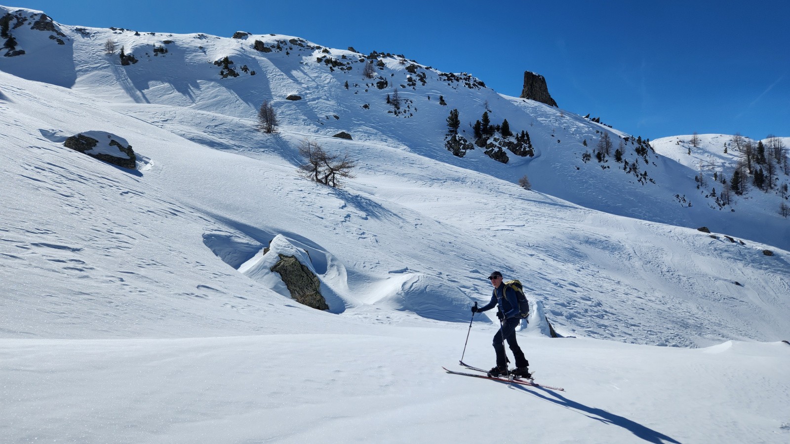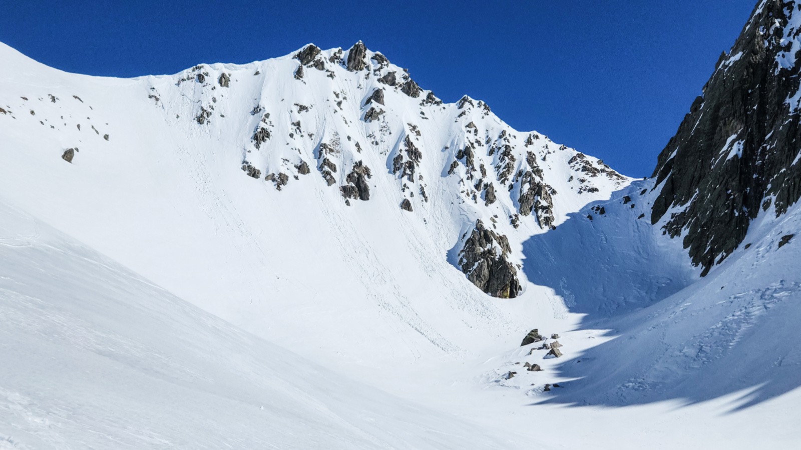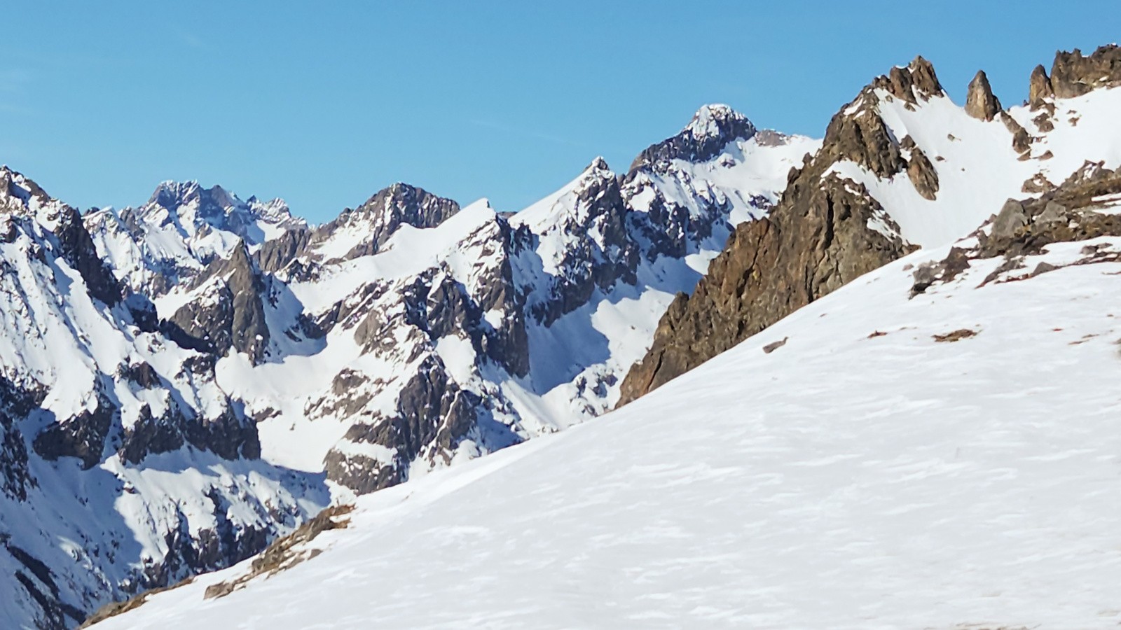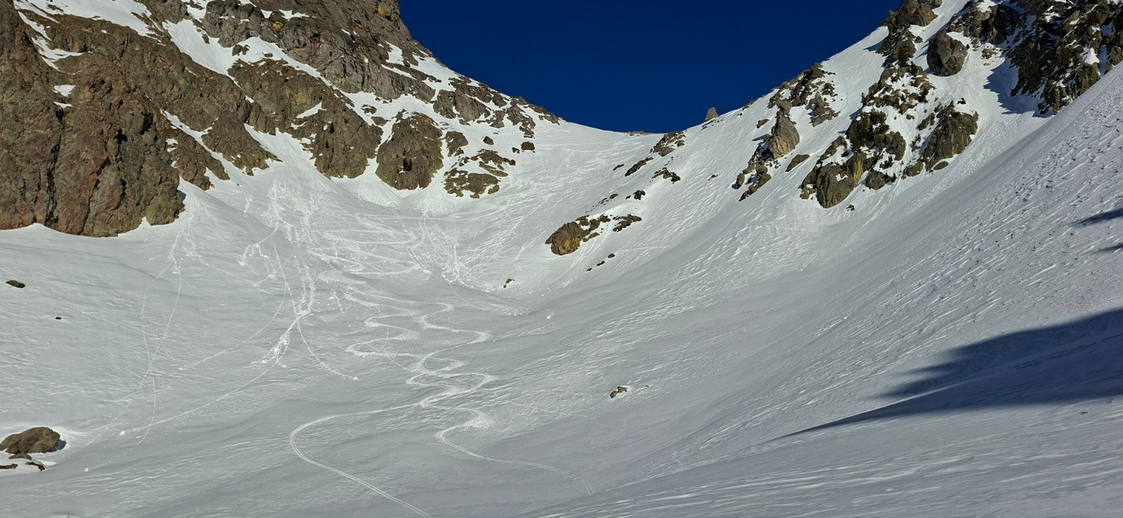 Ensuite les conditions aussi bien pour monter que pour descendre étaient au top. L'enneigement est très bon sur tout le parcours sauf dans le goulet du bas d'Empuonrame .