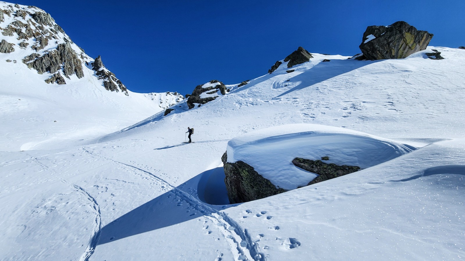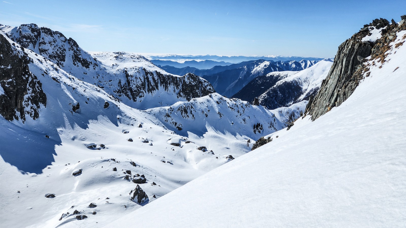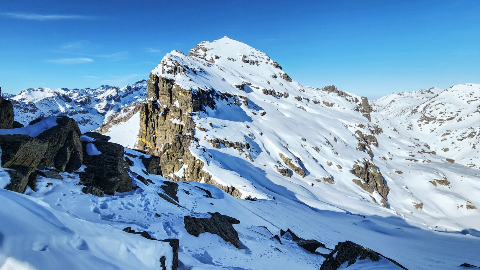 Ensuite les conditions aussi bien pour monter que pour descendre étaient au top. L'enneigement est très bon sur tout le parcours sauf dans le goulet du bas d'Empuonrame .