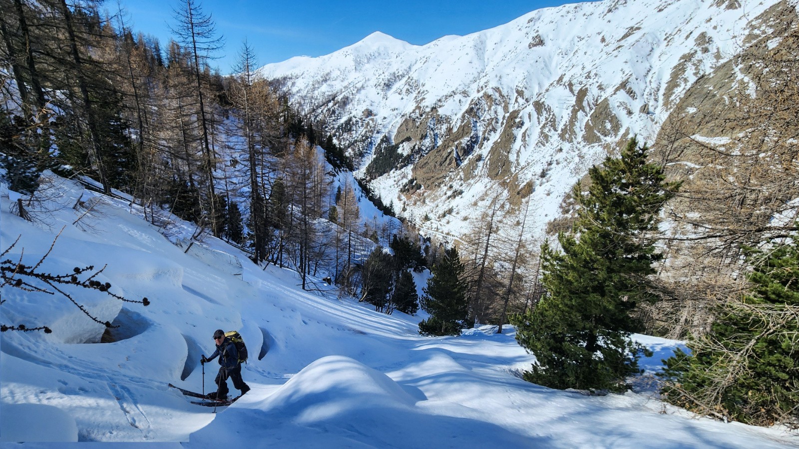 des coulées visibles dans les pentes exposées au soleil dès le matin