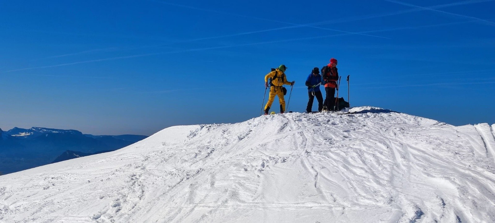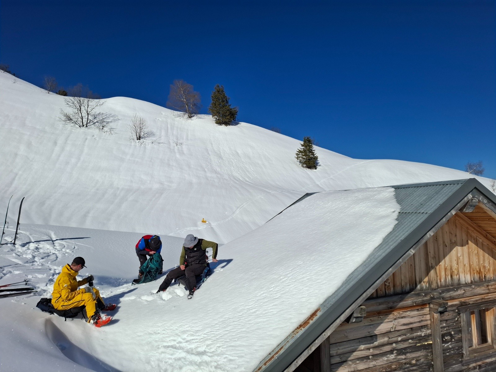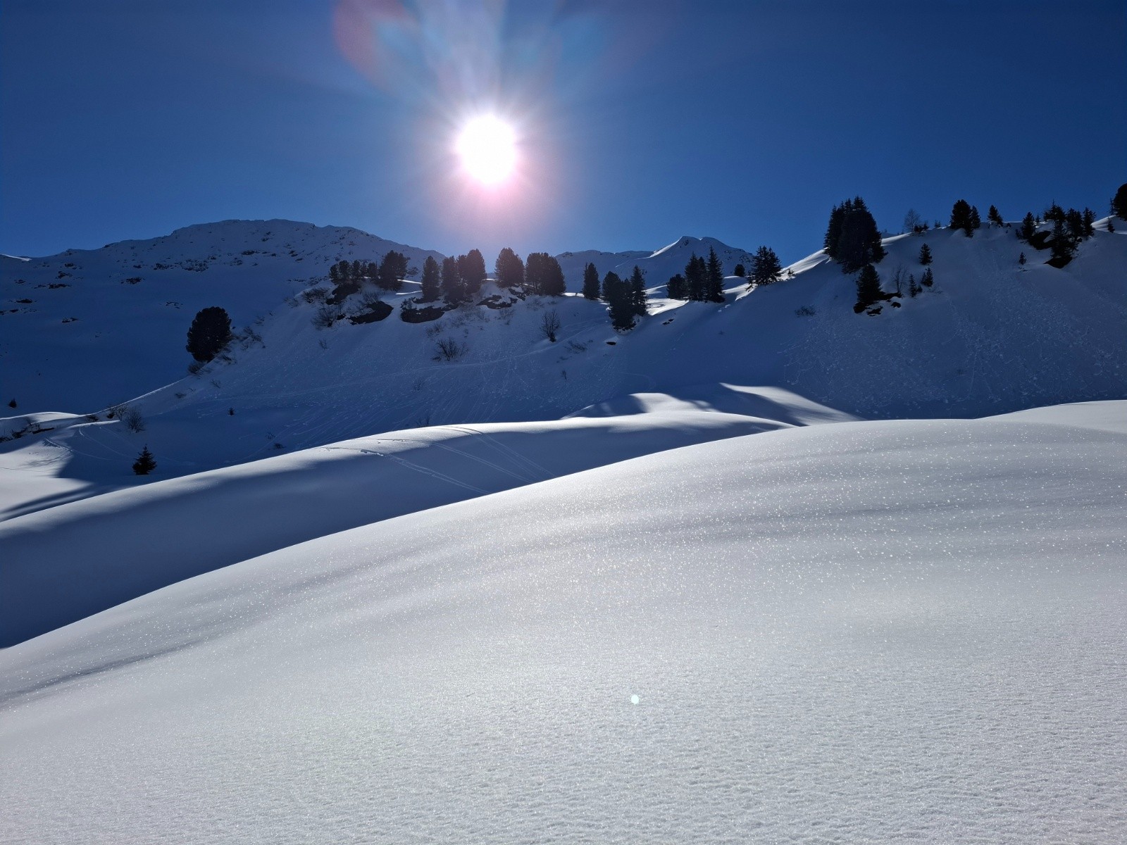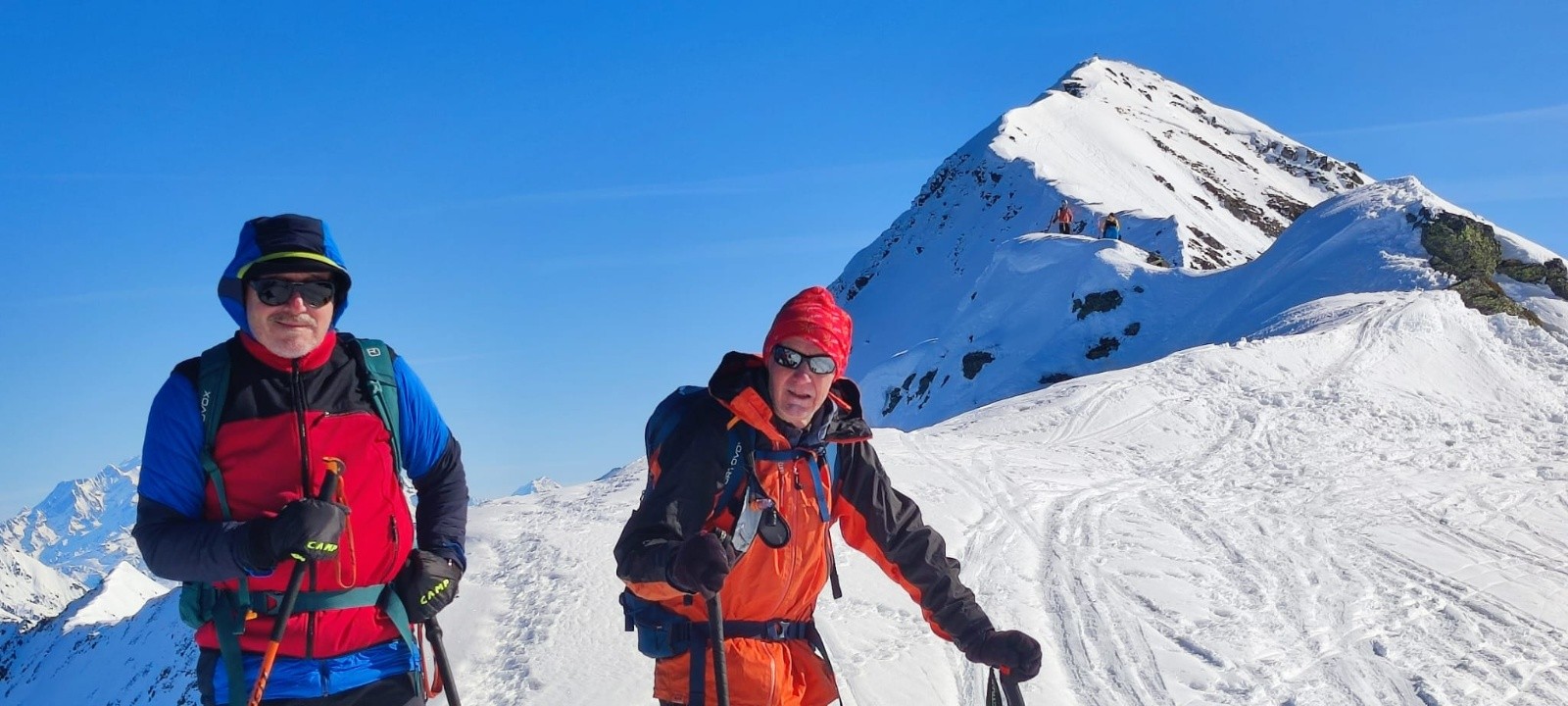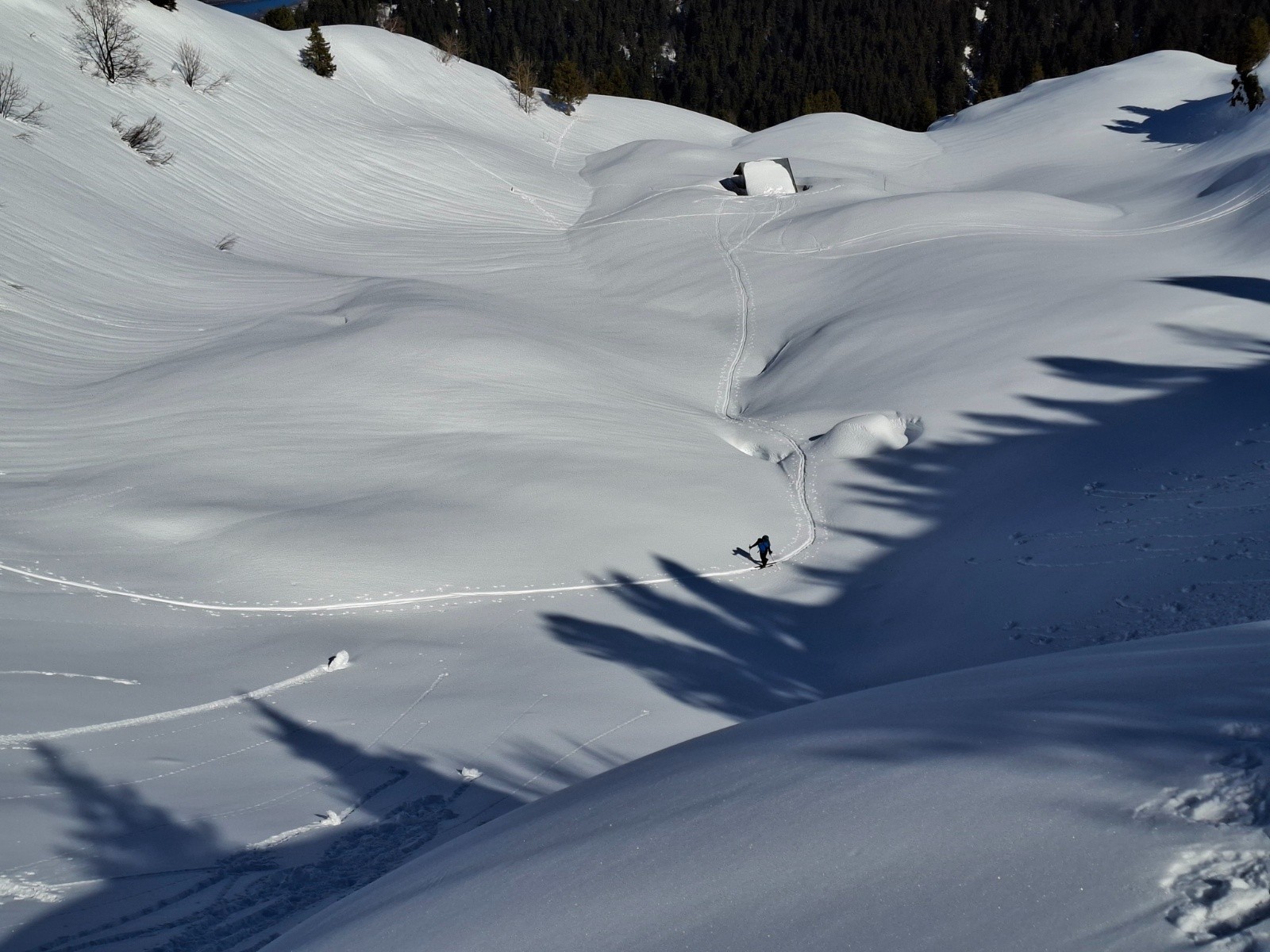 Récit : Réveil et démarrage matinal pour éviter une très grosse chaleur au retour (ca nous change 😂), pas de réel regel, neige légèrement dure en suivant la trace, cassante en sortant de cette dernière. Montée au Petit Arc en suivant une belle trace en zig zag pas très raide, merci aux traceurs👍. Nous étions partis initialement pour le Grand Arc mais nous nous contenterons du Petit Arc comme la personne qui nous a précédé et celles qui nous suivent. L'arête pour rejoindre le Grand Arc n'est pas jouable à moins de la faire en piolet crampons ( et encore😒). Redescendre et traverser en dessous du grand Arc pour rejoindre un col à droite de ce dernier et rejoindre le sommet, ne nous inspire pas non plus à cause de grosses cassure sous le grand Arc. Du coup , explorateurs, nous basculons en nord en direction de la forêt communal de Bonvillard. Seuls au monde, une bonne neige qui commence à ramollir dans les coins ensoleillés et une vielle poudre dans les coins à l'ombre. Pour de la moquette il faudrait encore attendre à minima 1h. Stop à coté d'un petit chalet (Chalet du Maret) vers 11H pour un long et bon casse croute. Remontée au petit arc (merci à notre traceur Rémi) en rejoignant l'arête gauche de ce dernier puis descente finale. La neige est bien molle, des escargots partent par endroit, nous avons bien fait de ne pas descendre plus tard. Petit bière en final au bar du parking pour clôturer cette belle journée et la découverte du versant sauvage coté Bonvillard.
