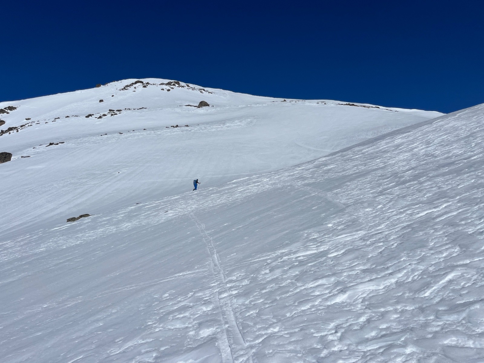 Conditions nivo et activité avalancheuse : pas de signes d’instabilité aujourd’hui sur notre itinéraire. Nombreuses traces d’avalanches de plaques dans la Clarée, probablement de week-end dernier et du début de semaine.