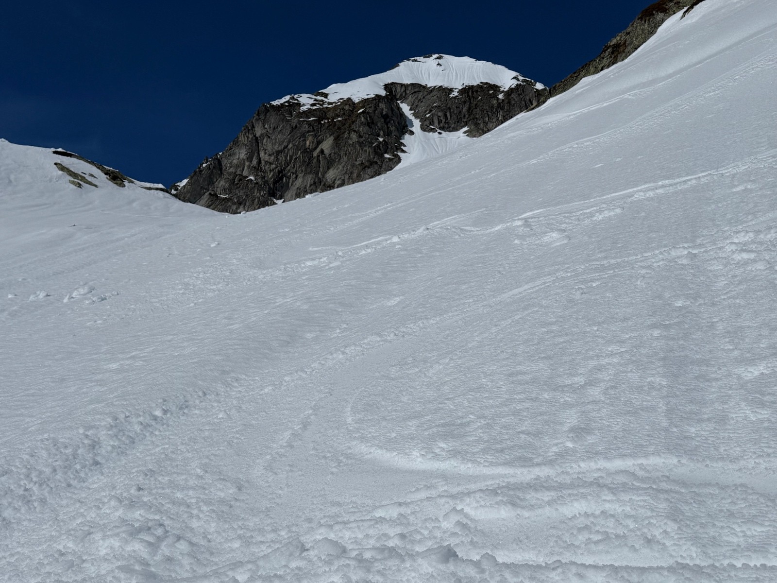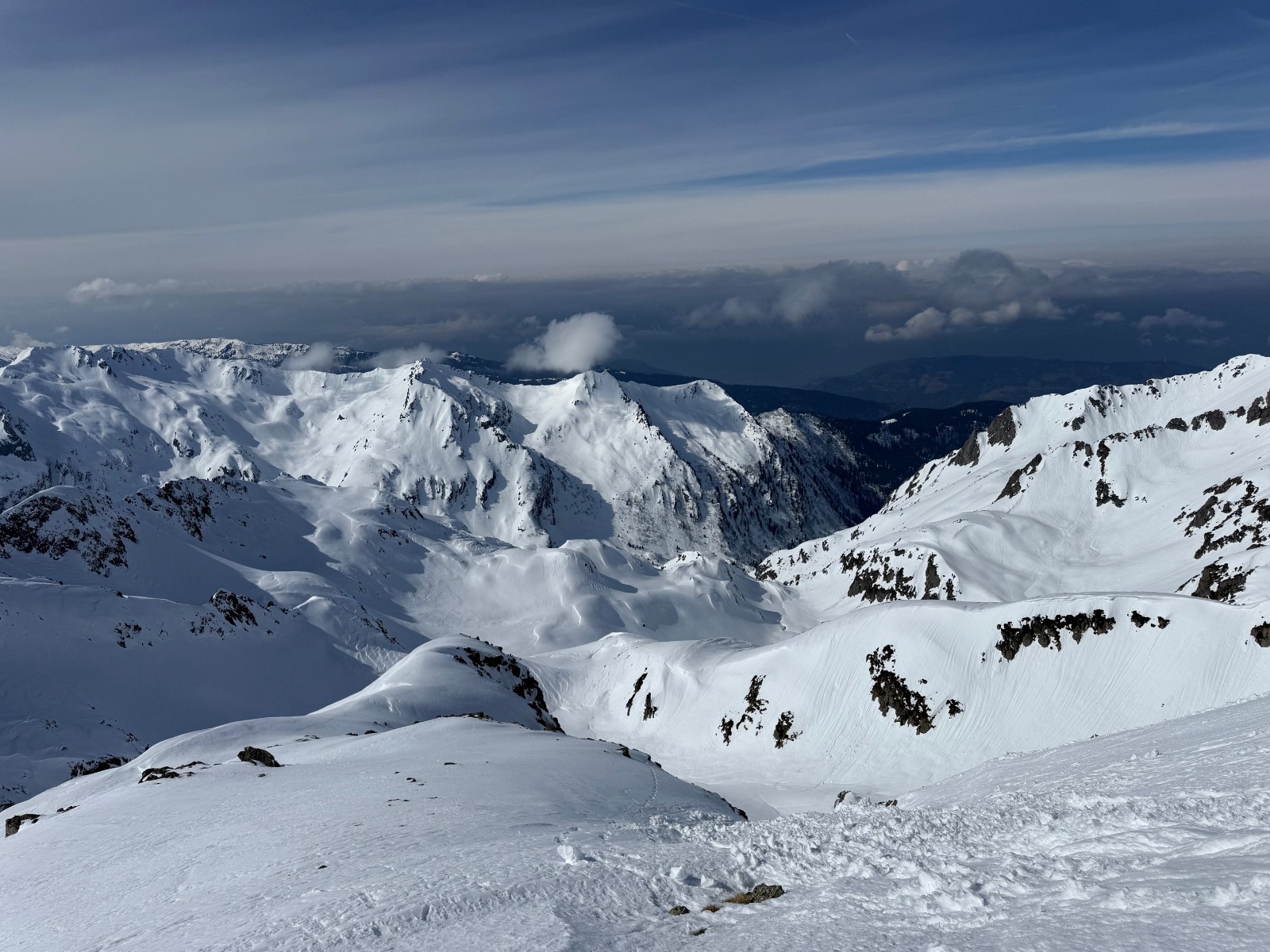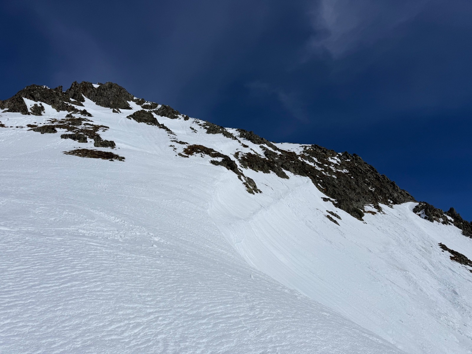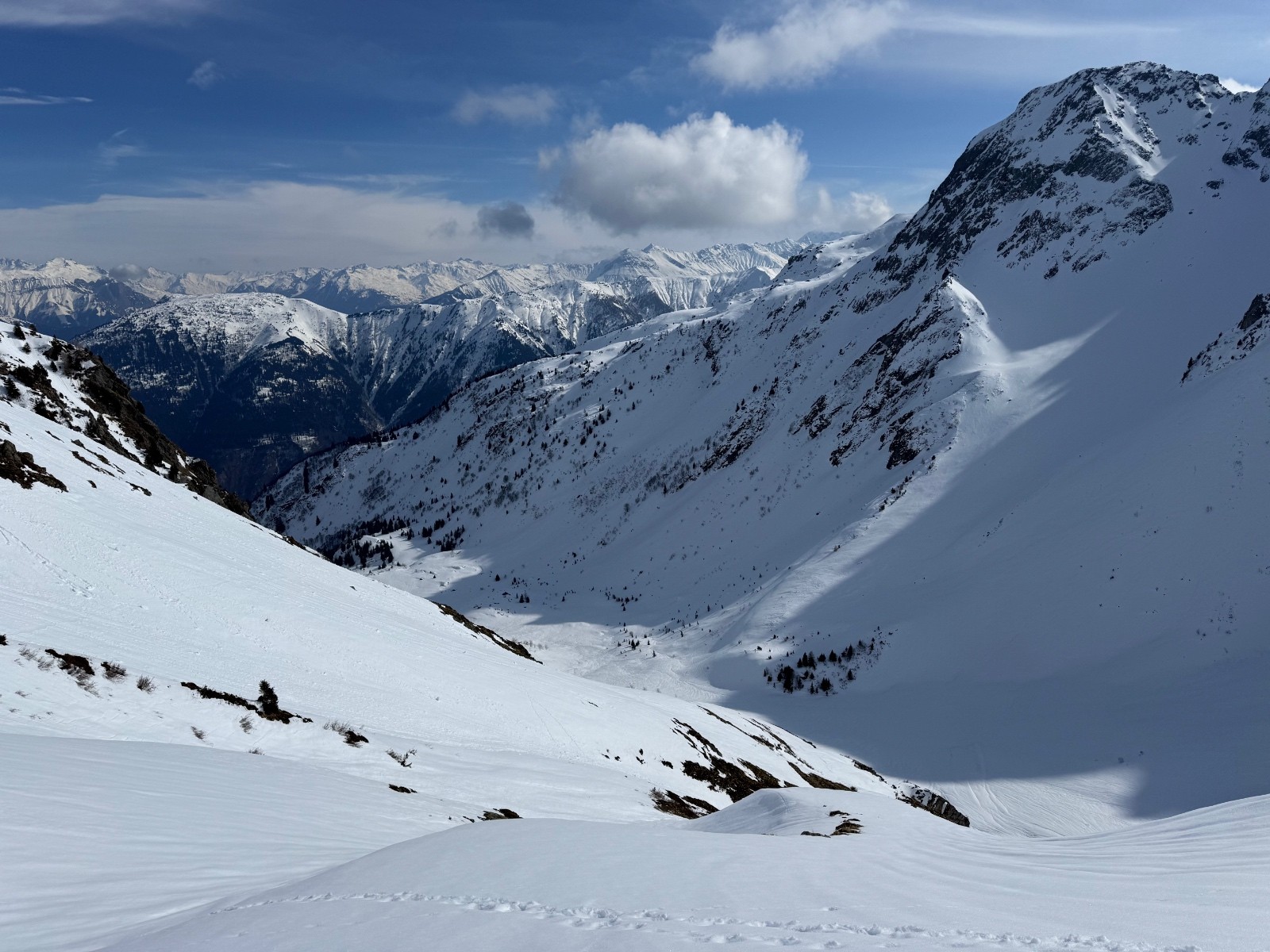 > qques virages en neige lourde et qui coule un peu pour le départ puis transfo nickel jusqu’au changement de face. Dans la Sw, une bande de neige étroite en neige dure ( grip ok) puis transfo avec parfois un peu de relief.