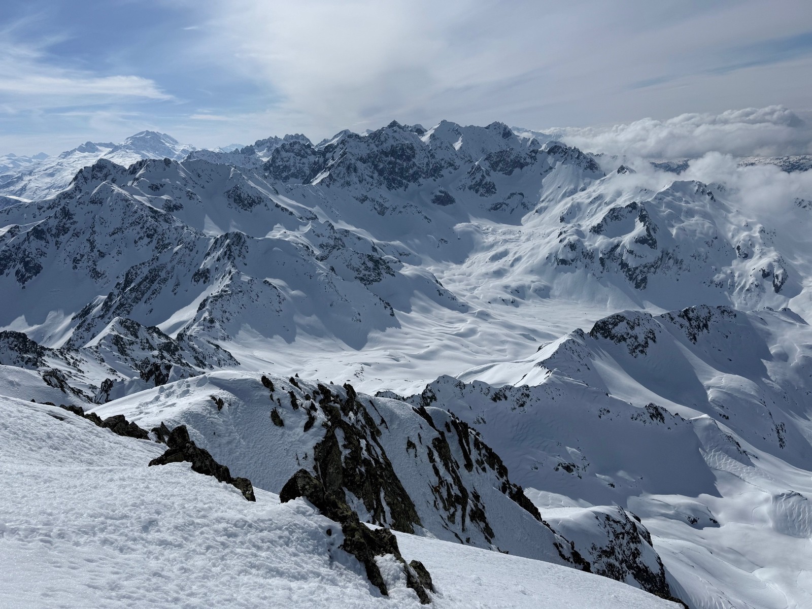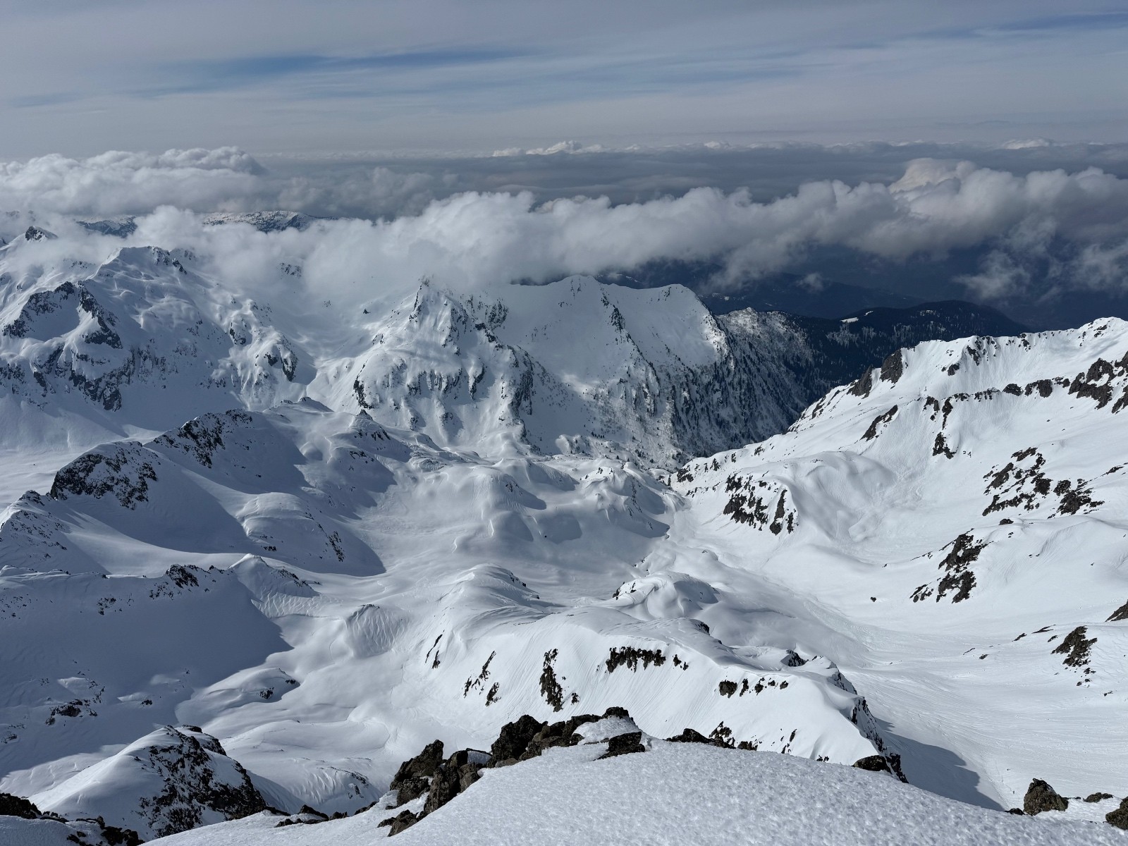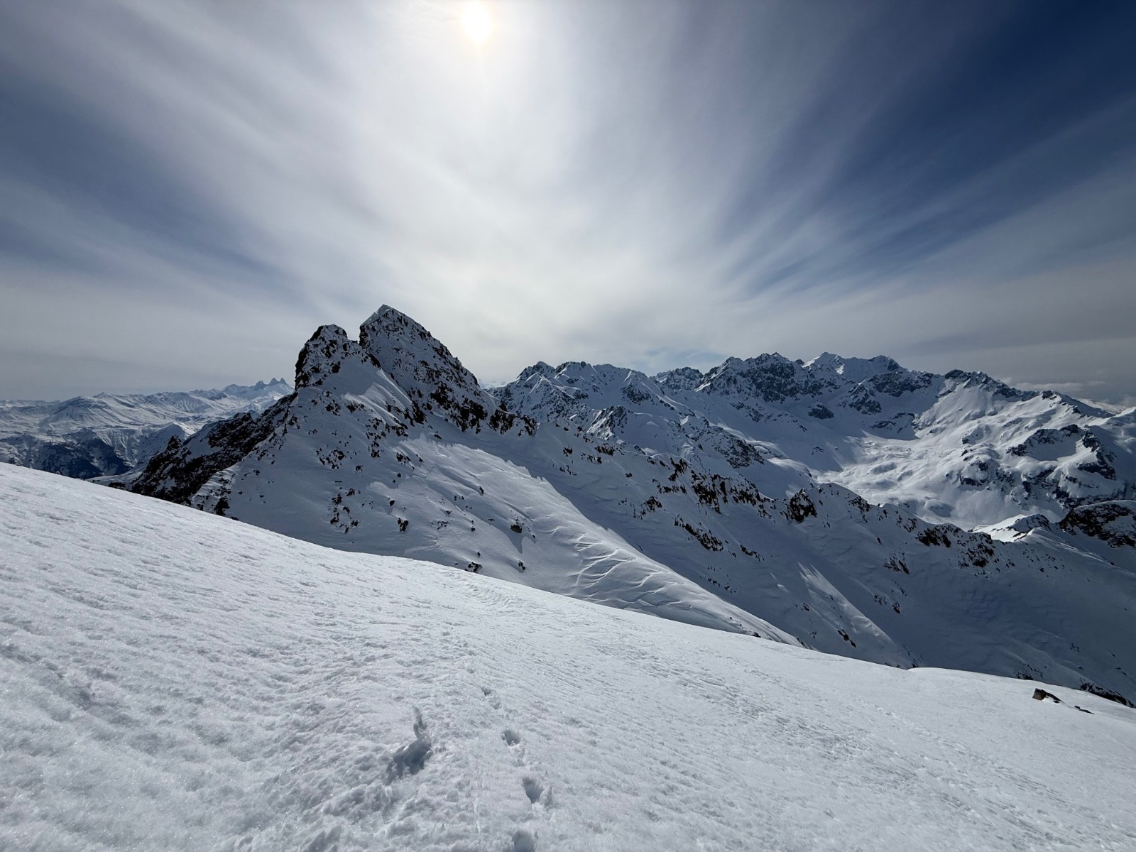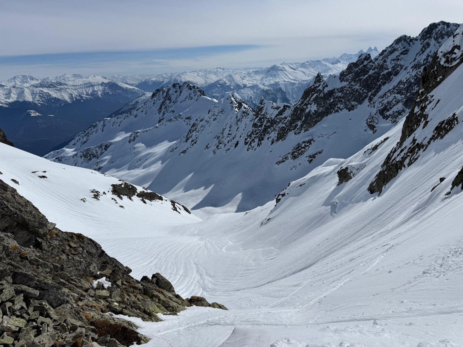 > qques virages en neige lourde et qui coule un peu pour le départ puis transfo nickel jusqu’au changement de face. Dans la Sw, une bande de neige étroite en neige dure ( grip ok) puis transfo avec parfois un peu de relief.
