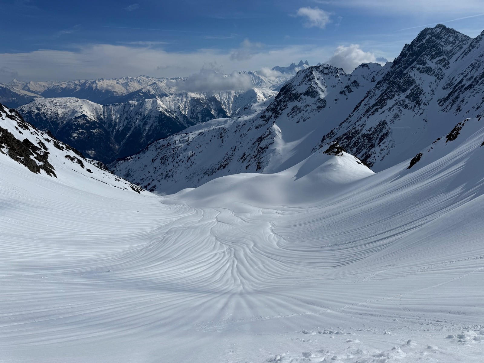 > depuis le Col de la Lavoire, retour par la combe sous la Pte de la Lavoire, transfo mais des zones avec des woops (on croirait sur une piste de Bmx 😅, mais c’est mou donc ça passe). Final tip top avant de rejoindre le vallon ramenant aux Granges.