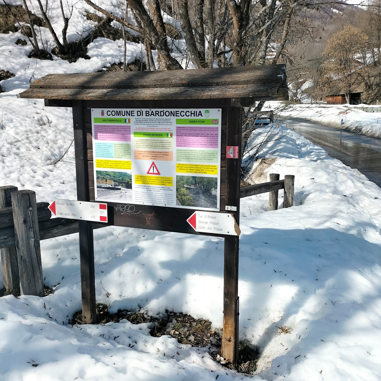 Mardi 24. Départ de Chialvetta, magnifique hameau , montée au Bric Boscasso. Descente dans une neige changeante, entre mou et croûte , ski physique.