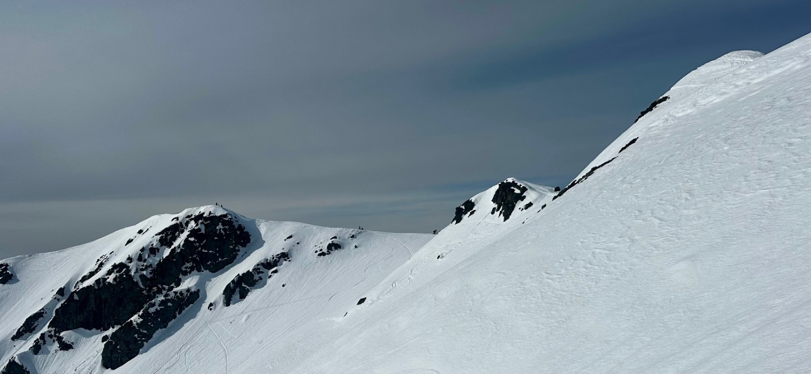 Conditions pour le ski : vielle poudre tassée/tracée dans la face nord.
